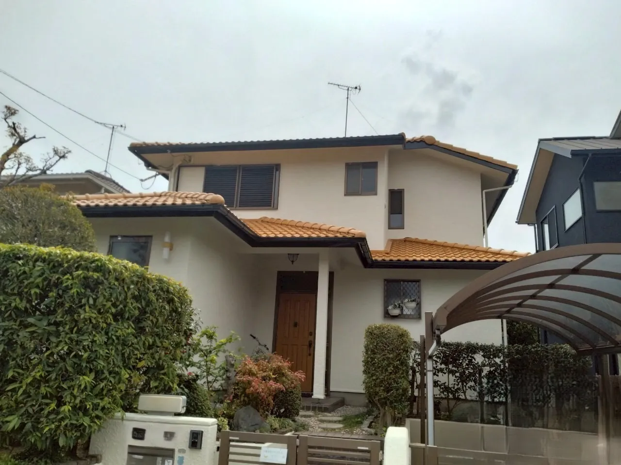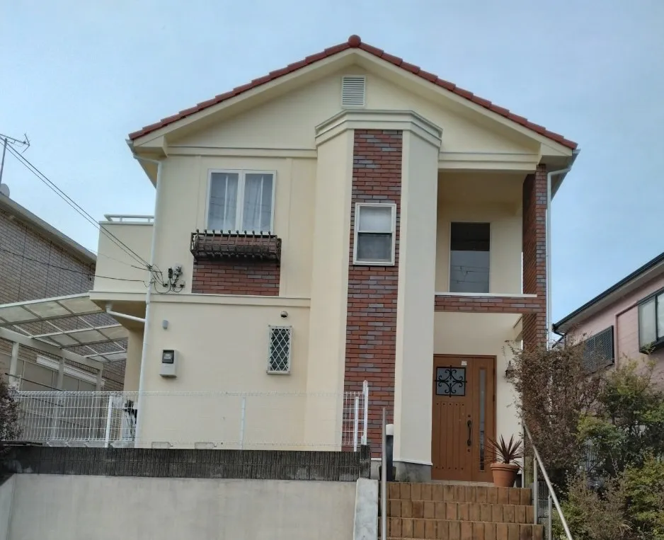 【外壁・屋根塗装】鮮やかなラディッシュオレンジの屋根に塗り替え(三田市) 前回の塗替えから11年。外壁は色褪せ、屋根は塗膜の剥がれが目立っていました。元と同じような仕上がりにしたいという施主様のご希望もあり、外壁は淡いベージュ系、屋根はオレンジ色に塗り替えをしまし…
