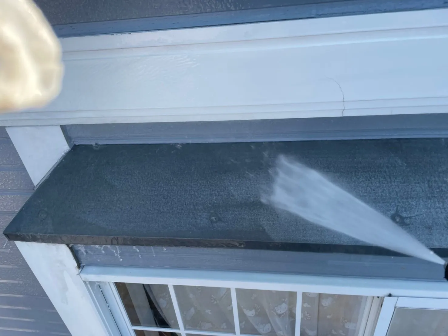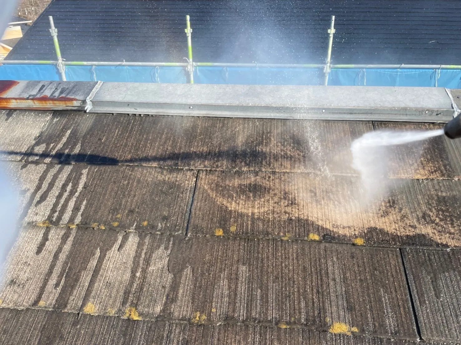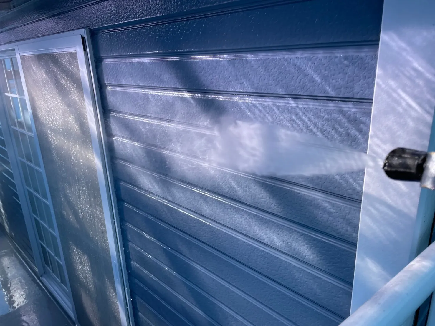 高圧洗浄機を使って、外壁のほこりや汚れ、脆弱した古い塗膜をしっかりと洗い流しました。剥がれかけた塗膜の上から塗装をすると、せっかく塗装をしてもすぐに剥がれてしまうという不具合が生じる場合があります。塗装作業の工程の中でも、重要な作業の一つです。