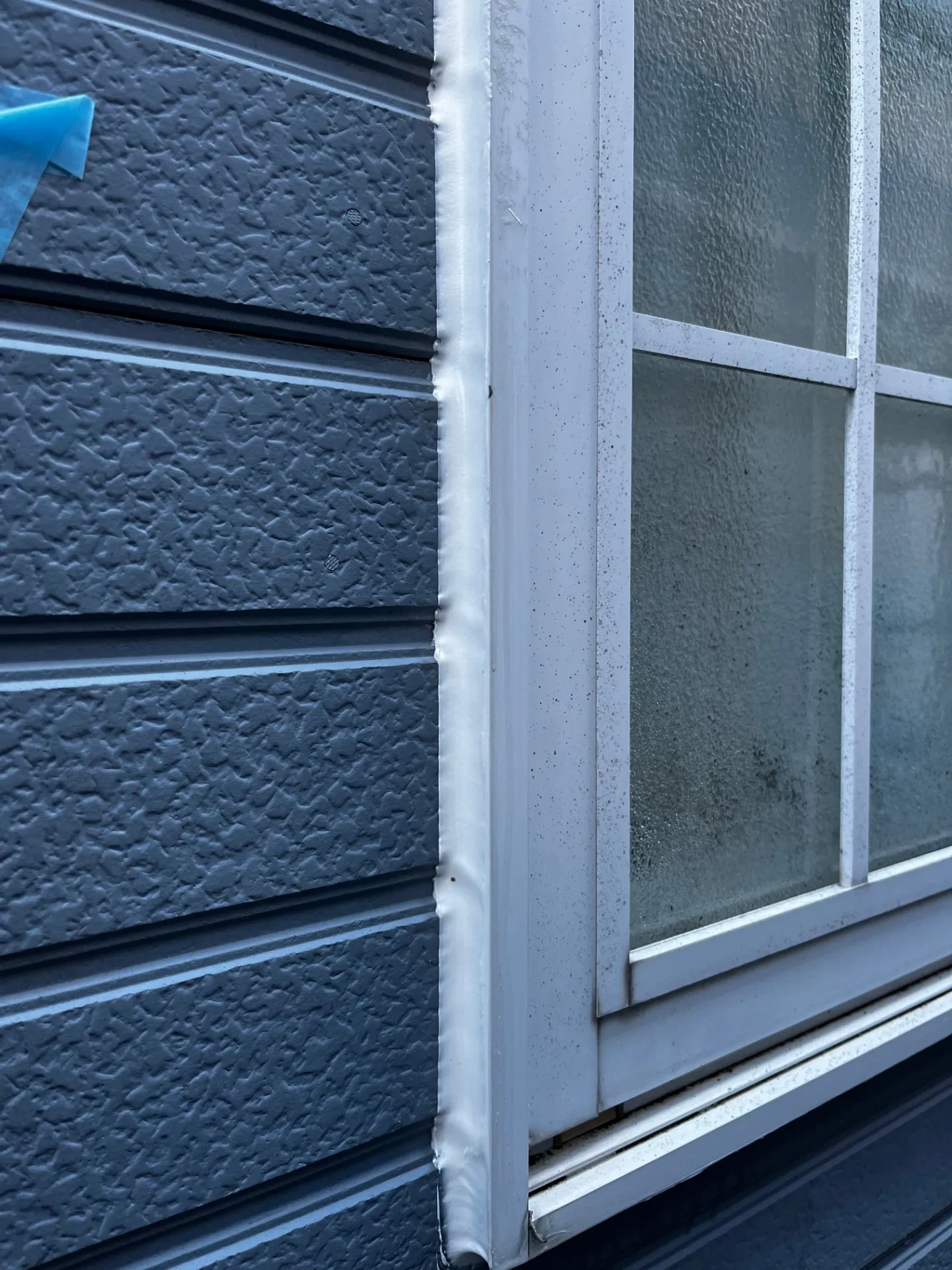 築26年、コーキングも肌別れやひび割れなどの経年劣化がみられました。目地部分のコーキングは古いものを取り除き新しいものに打ち替えました。開口部周りのコーキングはサッシ等を傷つけるおそれもあるため、上から増し打ちを行いました。