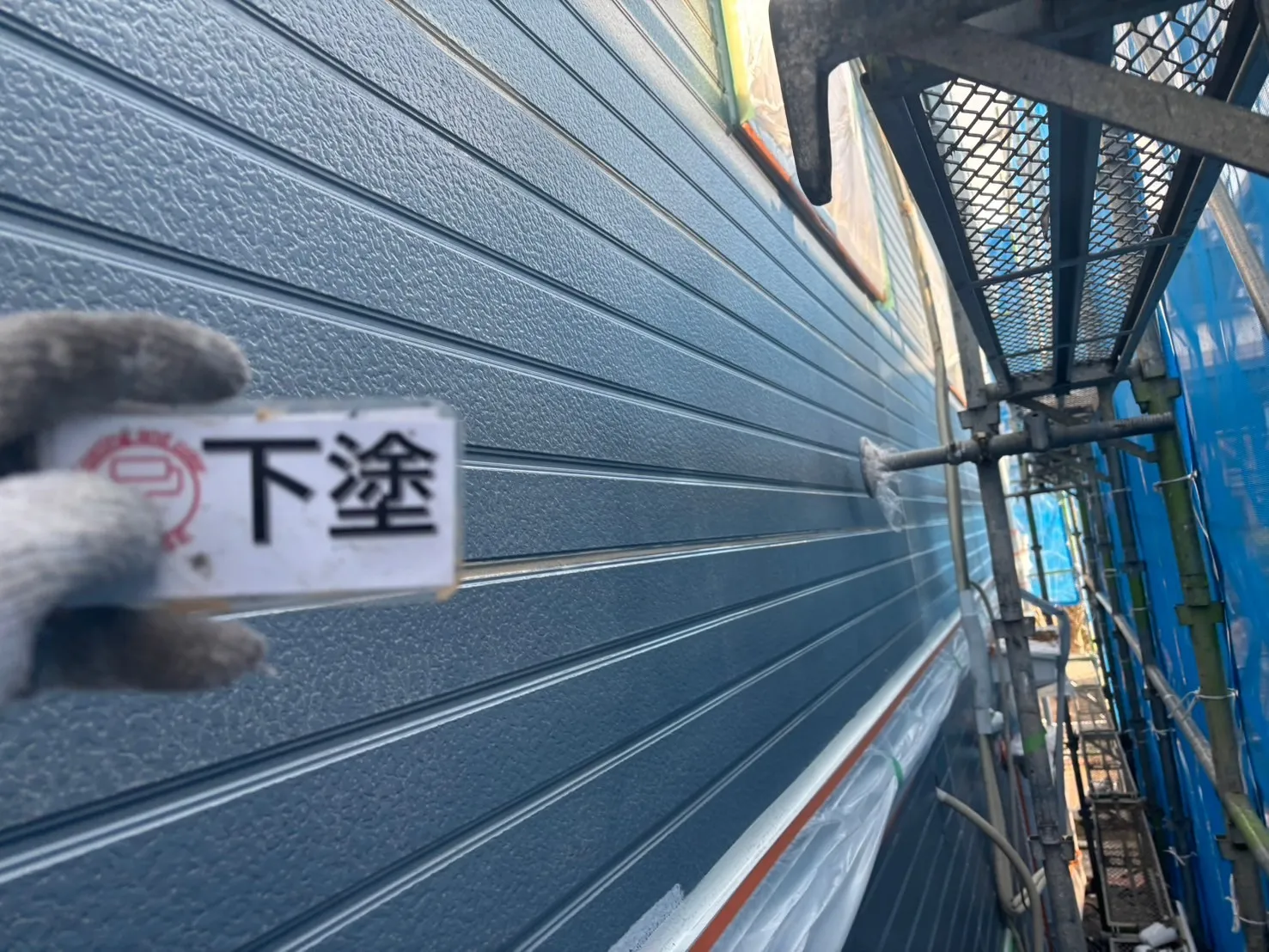 その後、カチオンシーラーで下塗り、SK化研のエスケープレミアム無機で中塗り、上塗りを行いました。