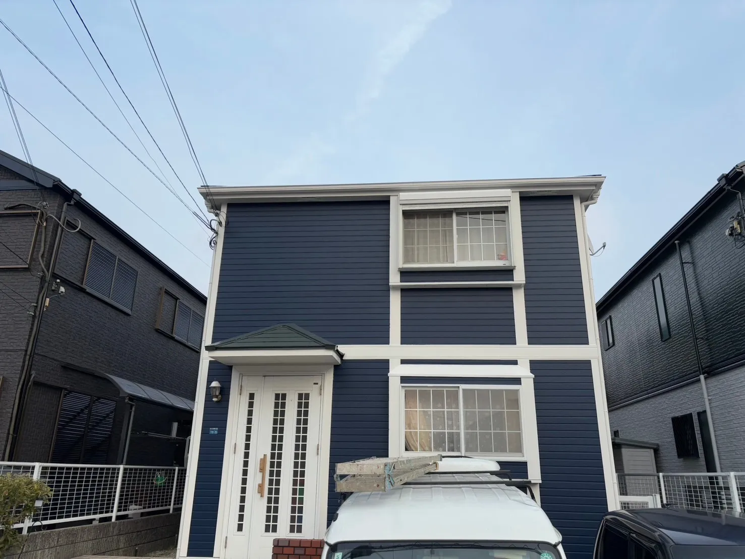 【外壁・屋根塗装】濃紺の外壁に白色の帯が映えるお家に変身(神戸市北区)