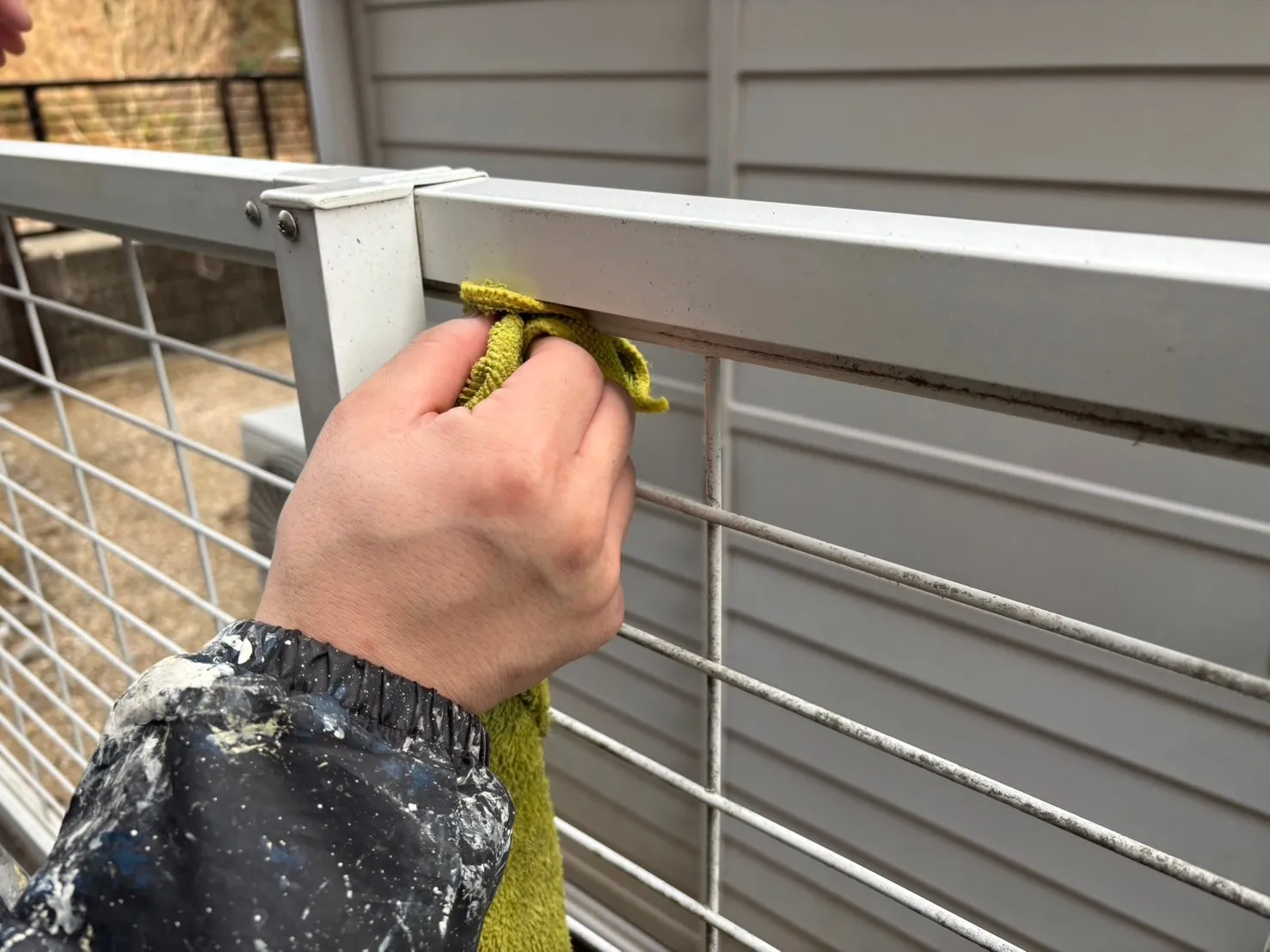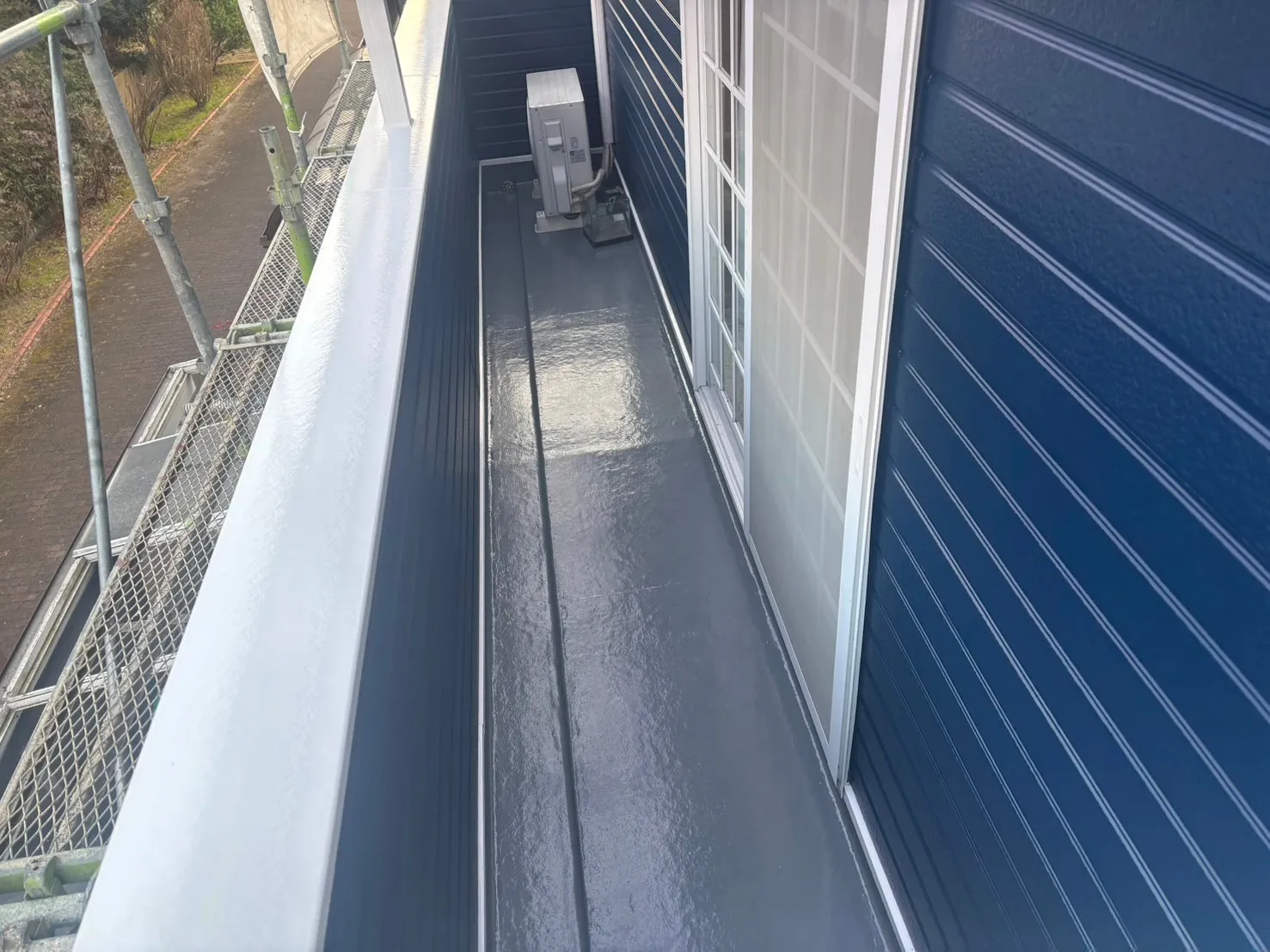 鉄部はケレンを行ってから錆止めを塗付して塗装を行いました。ベランダは、FRP防水が施されていたため表面の保護塗装を行いました。