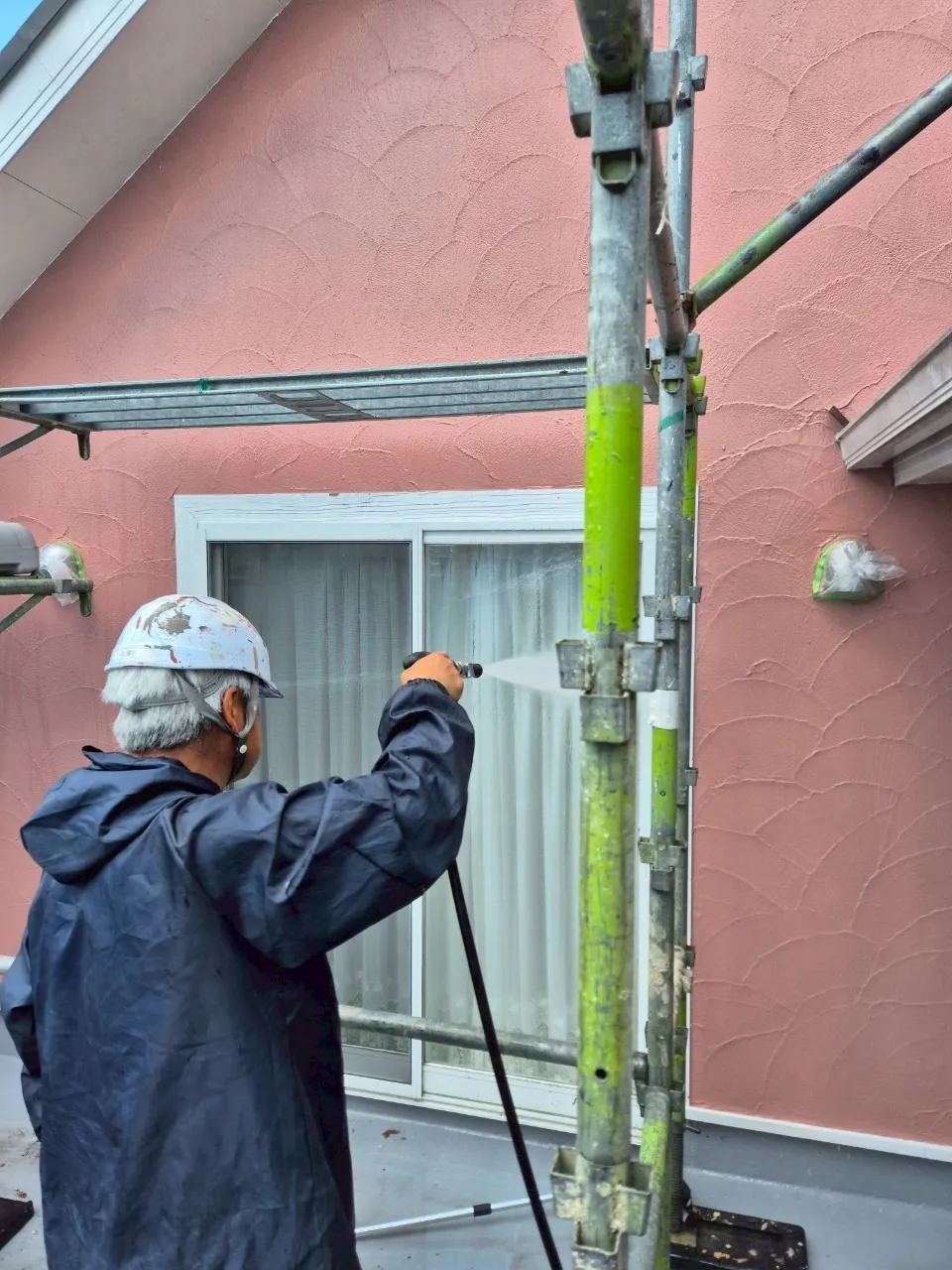 T様の外壁は、8年前に他社様で塗装されており、まだ致命的な傷みはありませんでした。しかし、今回は屋根工事のために足場を組みます。「また数年後に外壁のために足場代を払うのは非効率だ」というT様の合理的な判断により、外壁塗装も同時に行うことになりました。