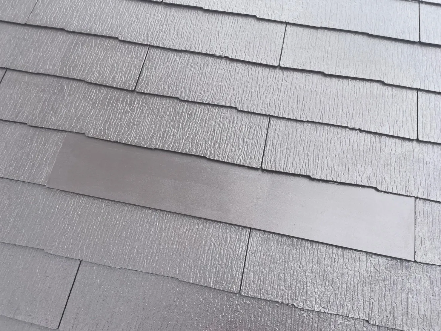 K様が最も心配されていた屋根の「割れ」。事前の建物診断で確認されたスレート屋根のひび割れや破損箇所は、塗装前に一部差し替えや補修を徹底的に行いました。この下地処理こそが、安心の鍵です。