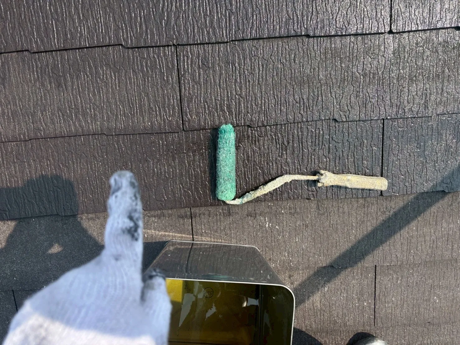その上で、下塗りには浸透固着性に優れた「エポックマイルドシーラー」を2回塗り重ね、屋根材自体を強固に補強。仕上げには耐候性の高い「ナノルーフ15(黒)」を使用しました。見えない部分の補修と、計3回以上の丁寧な重ね塗りにより、三田市の厳しい自然環境から家を守り抜く、強くて美しい屋根へと再生させました。