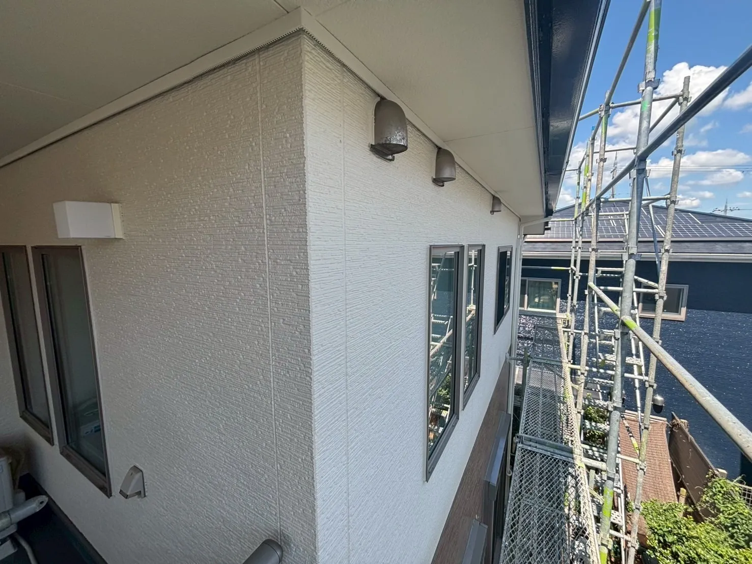 18日間にわたる工事が無事完了しました。心配されていた屋根の割れもしっかりと解消され、外壁はK様のご希望通り、元のデザインの良さを残しつつ、明るく清潔感のある仕上がりとなりました。足場が解体され、生まれ変わった我が家を見た瞬間のK様の安堵の表情が、私たちにとって何よりの喜びです。