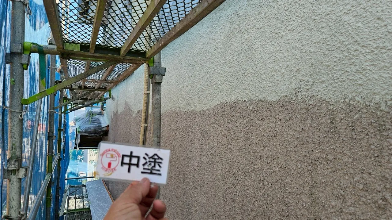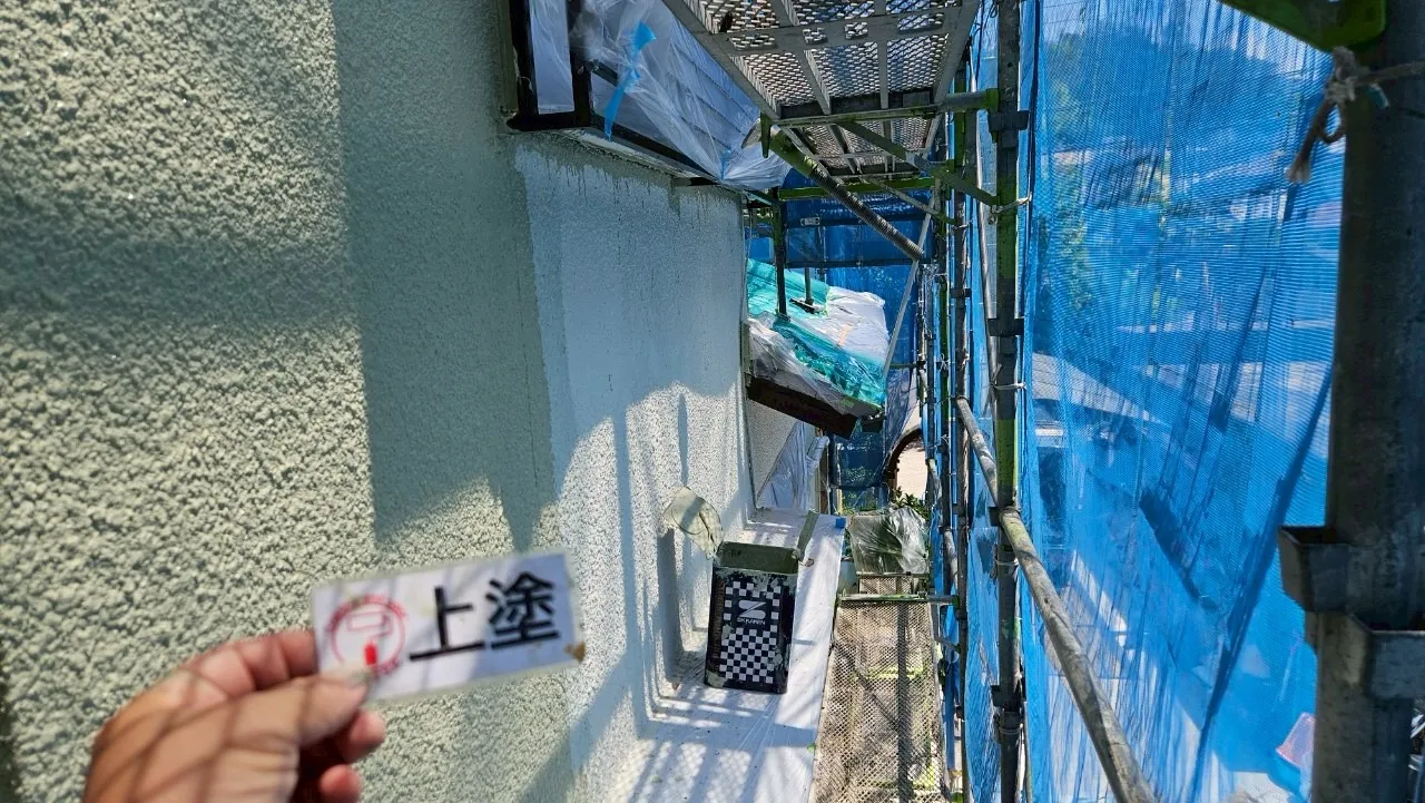 この汚れを完全に落としきらないまま高性能な塗料を塗っても、それは「汚れの上に塗っている」のと同じこと。すぐに剥がれてしまっては、安く抑えた意味がありません。私たちは、今回採用した「プレミアム無機」という最高ランクの塗料がしっかりと外壁に食いつくよう、時間をかけて徹底的に洗浄を行いました。17日間の工事の成功は、この洗浄ですべて決まると言っても過言ではありません。