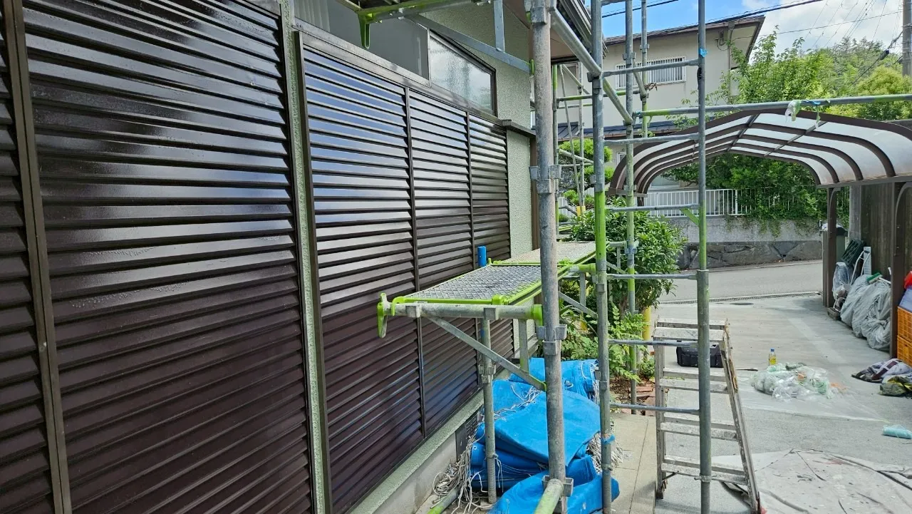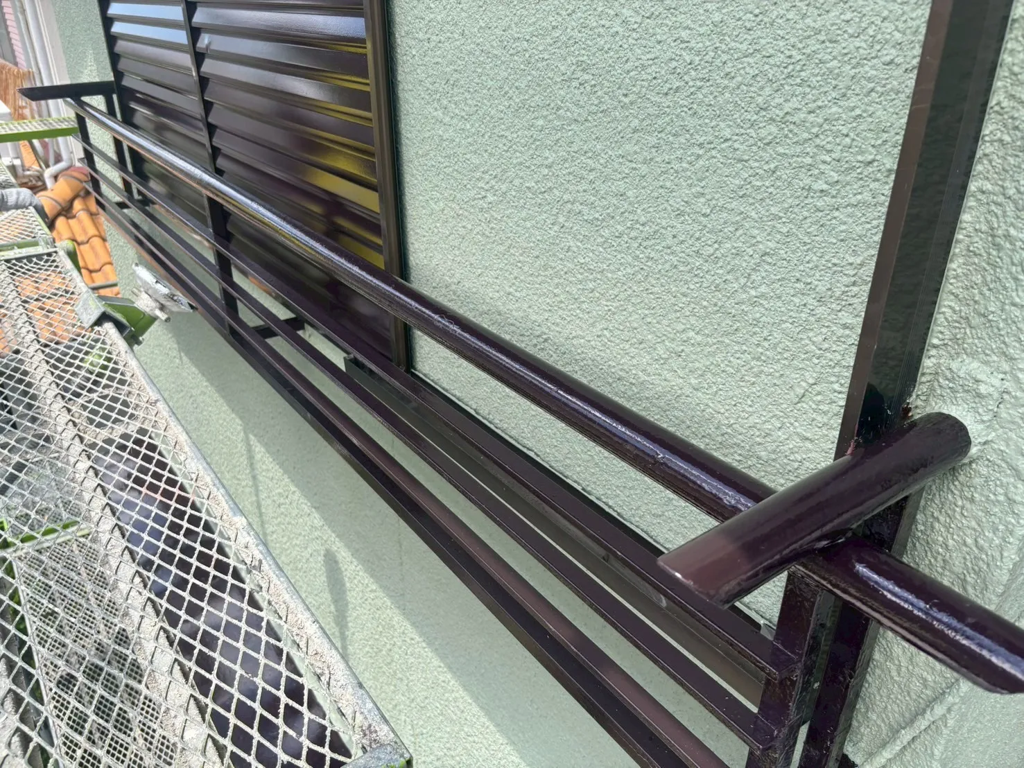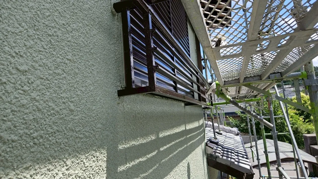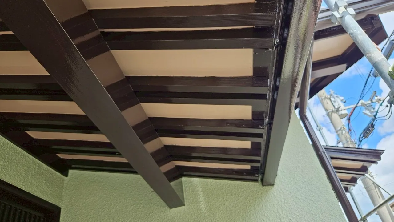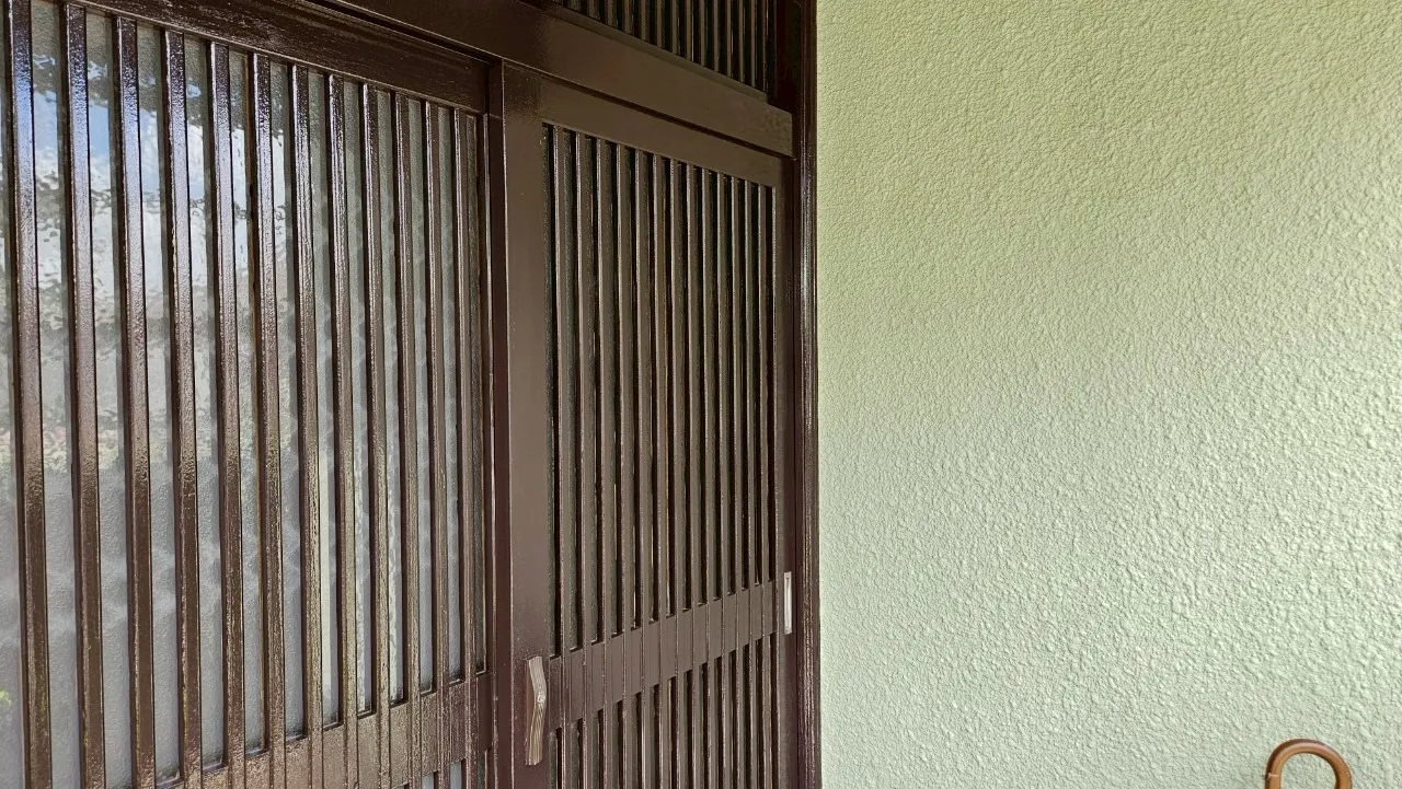 雨戸や木製面格子などの付帯部は、ただ塗るだけではすぐに剥がれてしまいます。私たちは塗装前にヤスリがけを行う「ケレン作業」を徹底し、塗料の密着性を高めてから丁寧に仕上げました。