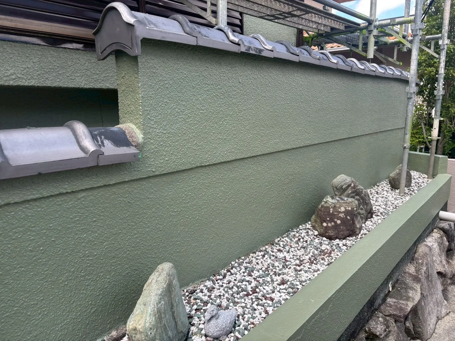 「エスケープレミアム無機(色:SR-425)」でした。一見、塗料単価は高く感じるかもしれませんが、耐候性が非常に高く、次の塗り替えまでの期間を大幅に延ばすことができます。