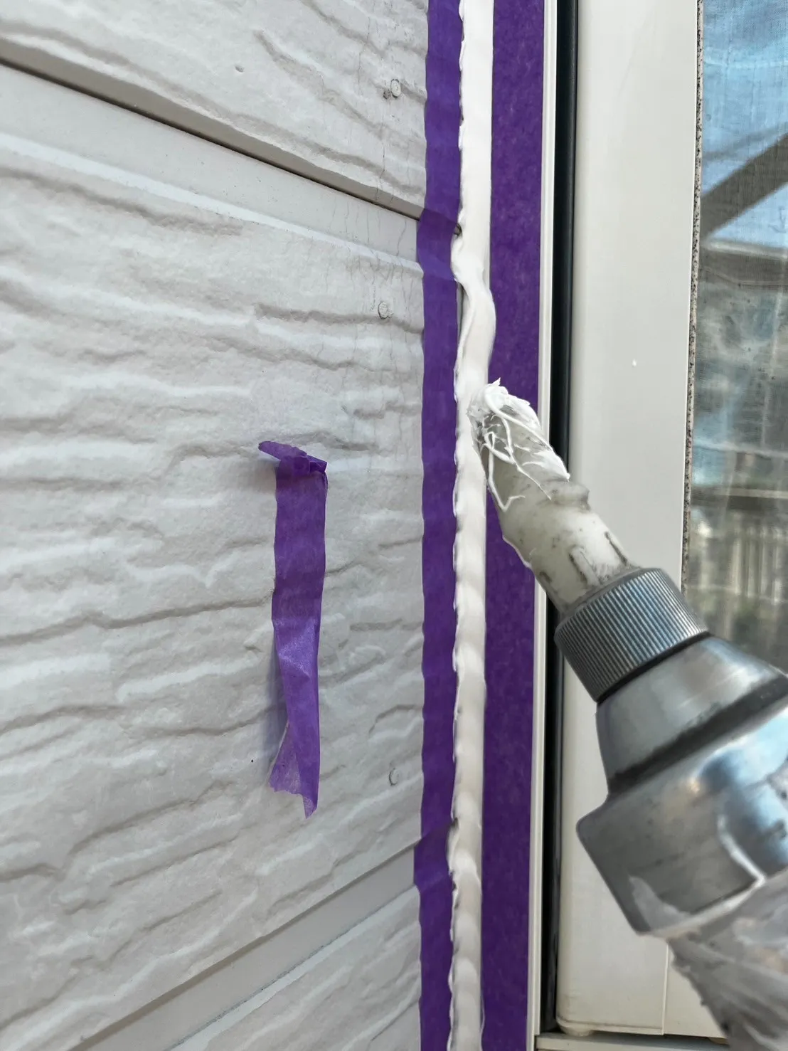 劣化した古いコーキングを撤去し、新しい材を充填する打ち替え工事を実施。外壁のつなぎ目や窓周りからの水の侵入をシャットアウトしました。下地補修をおろそかにしては、いくら良い塗料を使っても意味がありません。見えなくなる部分にこそ、プロのこだわりを詰め込んでいます。