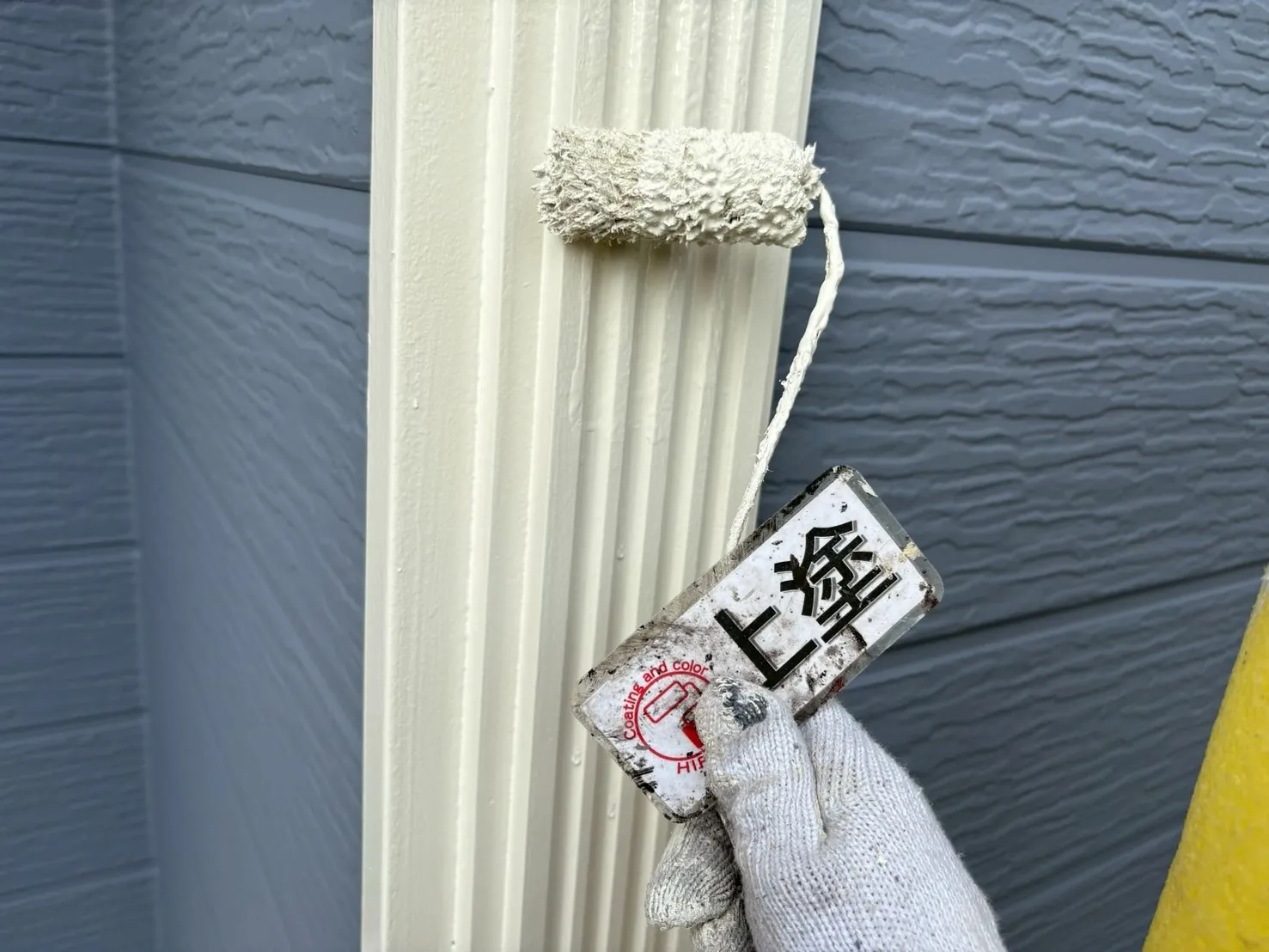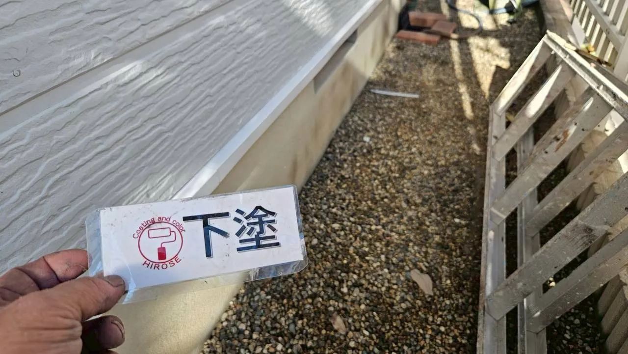 Y様のお住まいは築27年が経過しており、外壁に触れると白い粉がつく「チョーキング現象」が起きていました。これは塗料の防水機能が寿命を迎えている証拠です。この粉や長年の汚れが残ったままでは、どんなに高性能な塗料を塗っても、シールのようにすぐに剥がれてしまいます。