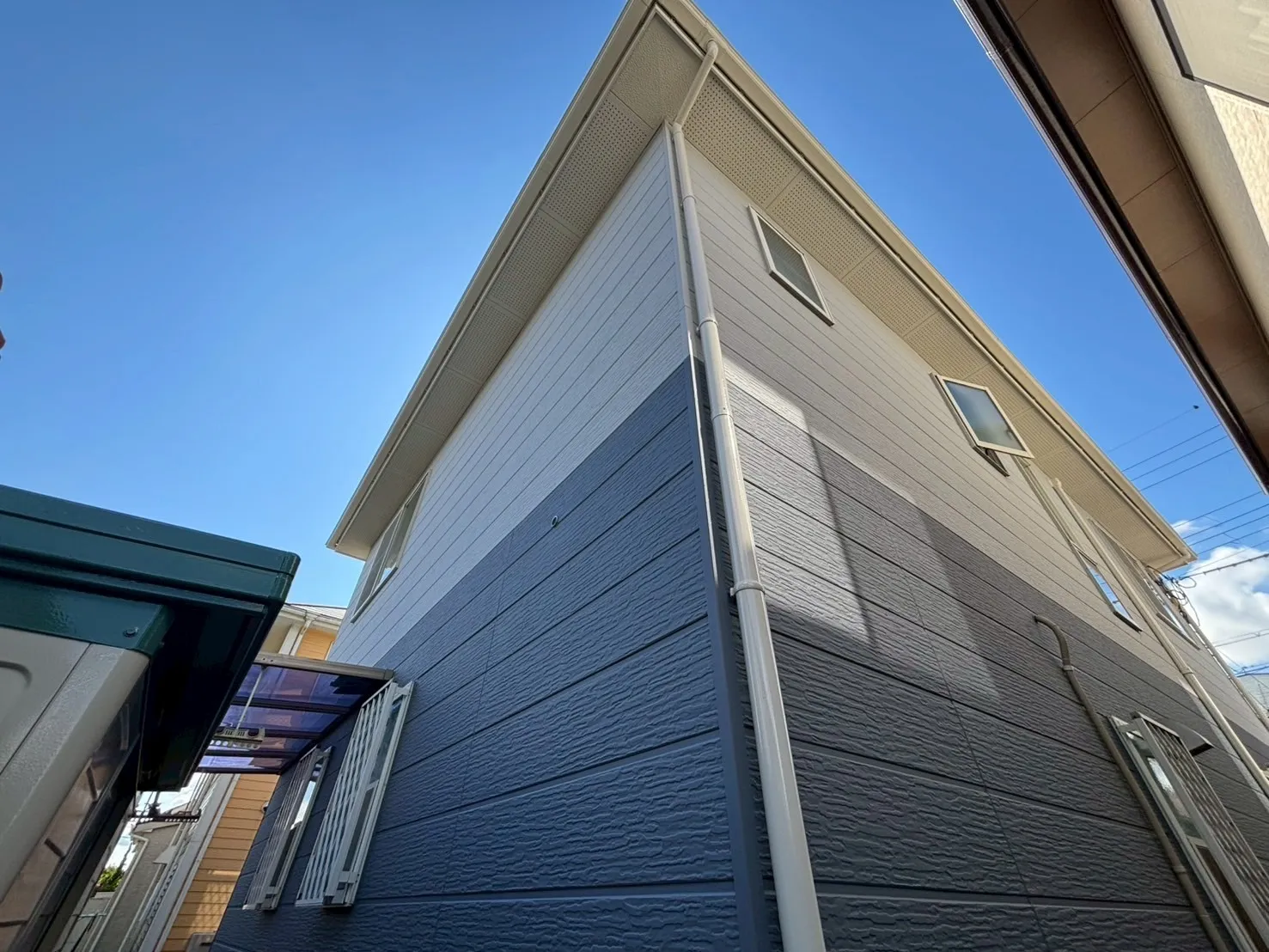 15日間の工事が無事に完了しました。懸念されていた「直貼り工法」による不具合のリスクも、適切な塗料選定によって解消されました。足場が解体され、モダンなツートンカラーに生まれ変わった我が家をご覧になったY様。「プロに頼んでよかった。これで安心して住めるよ」とのお言葉をいただき、私たちも安堵しております。