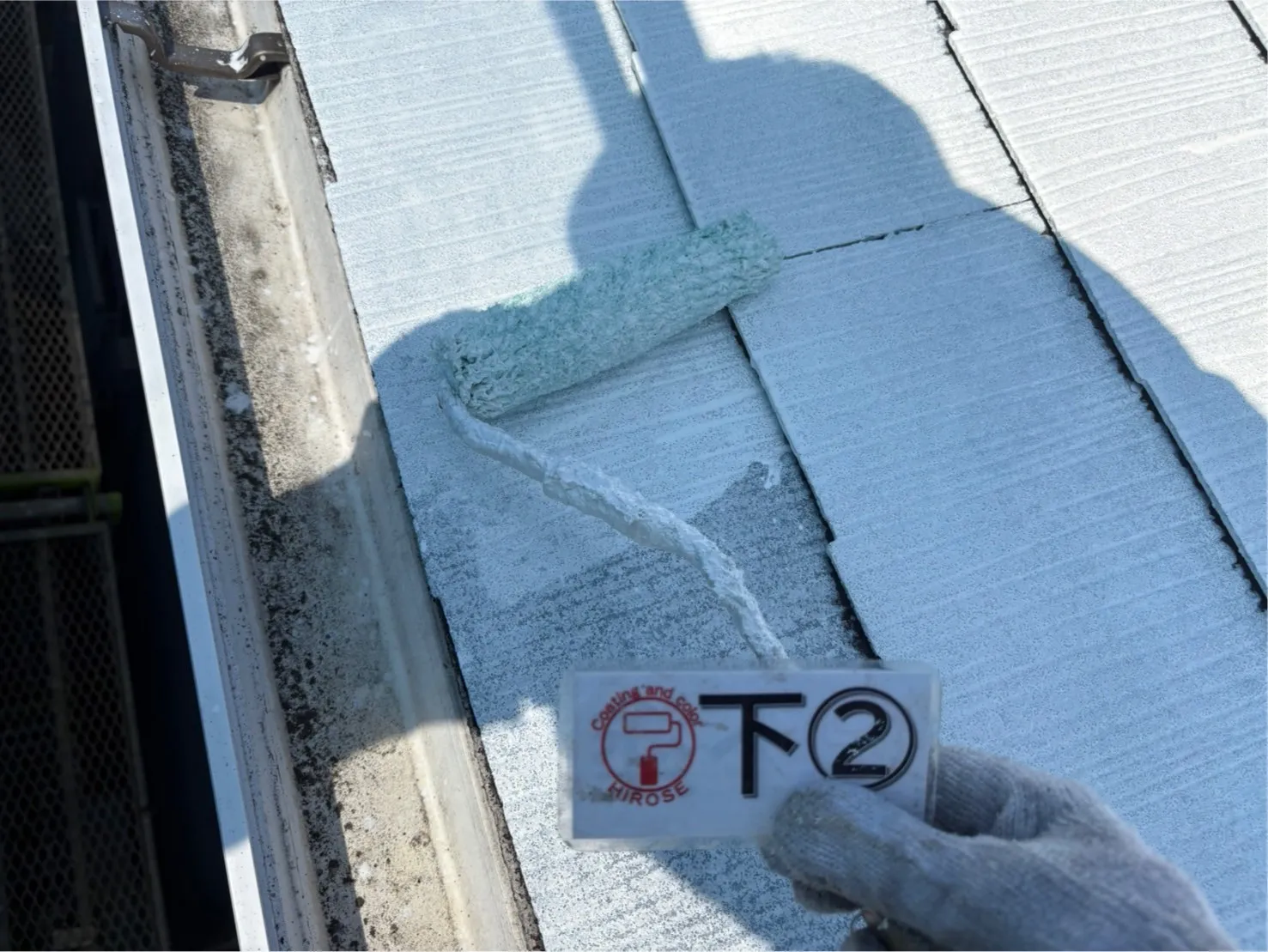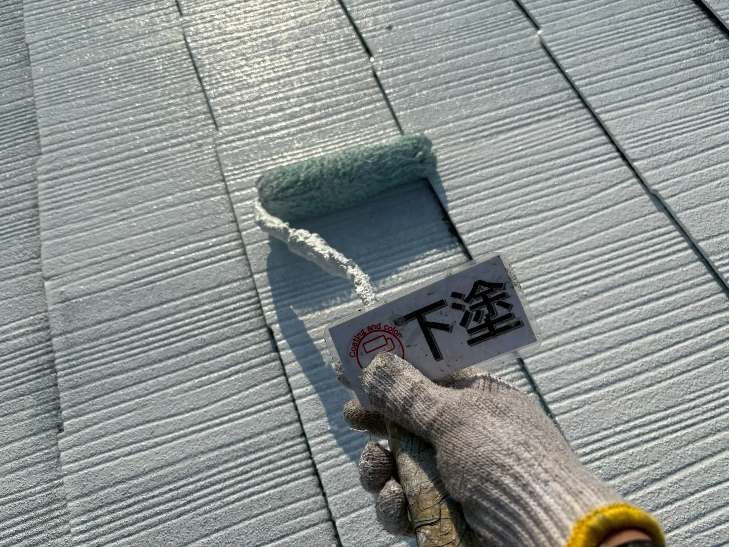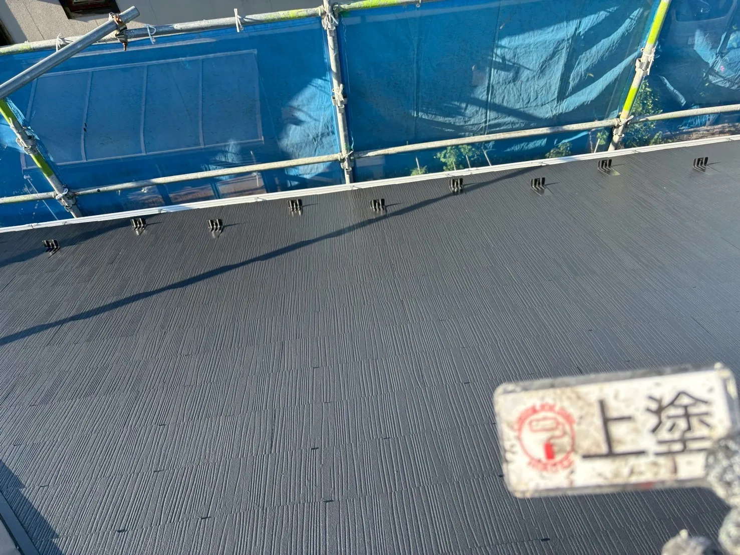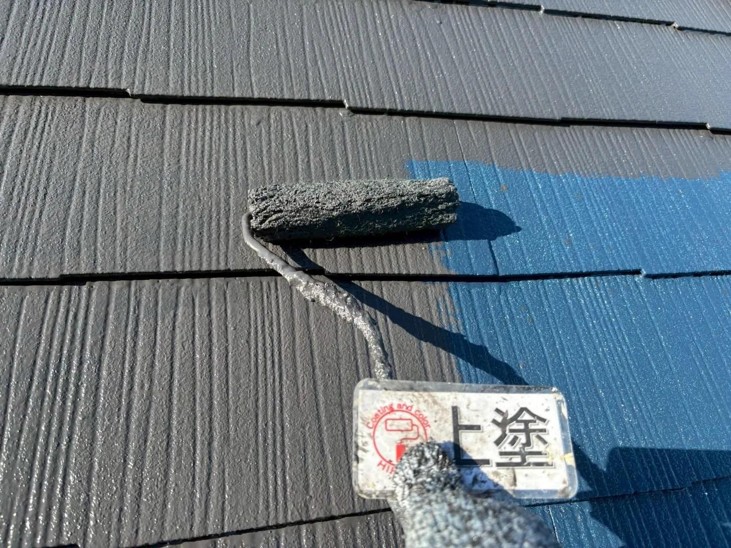 屋根は外壁以上に紫外線や雨風の影響を強く受けます。今回は、優れた耐候性を持つ「ナノルーフ15(ダークグレー)」を使用しました。この塗料は汚れに強く、長期にわたって美観と防水性を維持できるため、「長持ちさせたい」というY様のニーズに最適です。