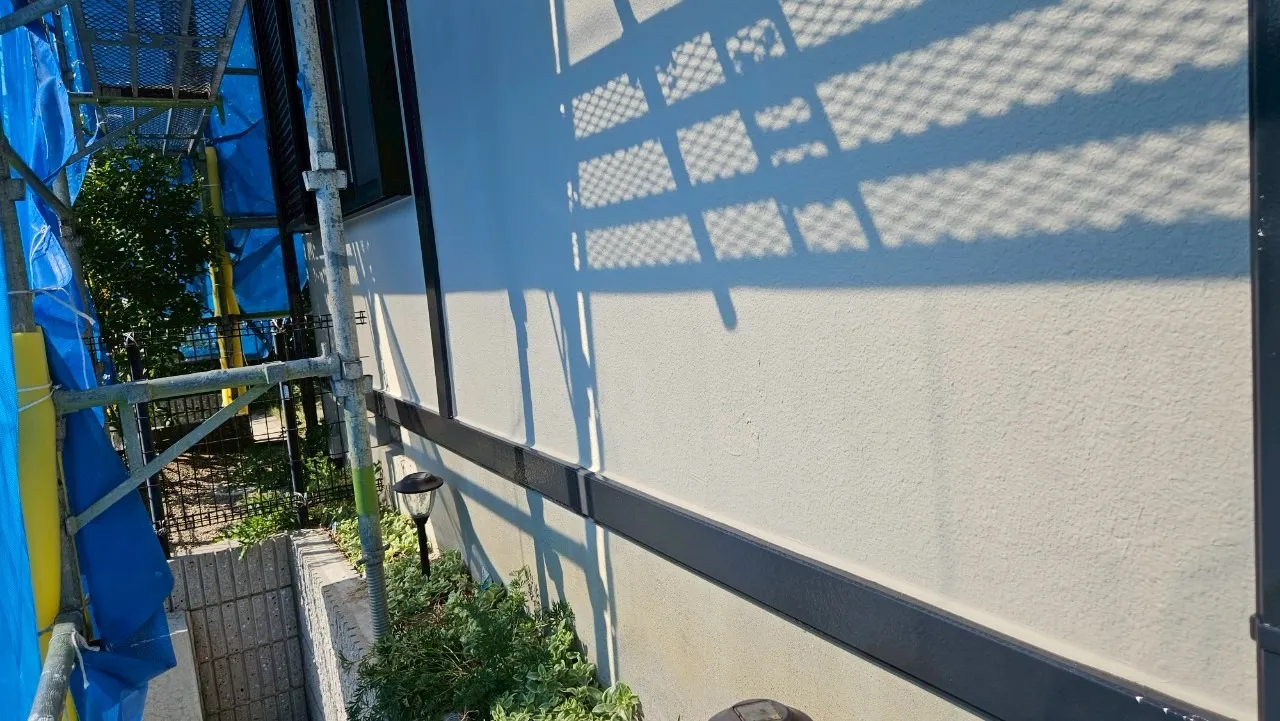 私たちは塗装を始める前に、大小さまざまなひび割れを一本一本確認し、適切な補修材を用いて丁寧に埋める作業を行いました。表面を綺麗にするだけでなく、建物の防水機能を根本から立て直すこと。これこそが、K様が求めていた「丁寧な工事」の正体です。塗装後には見えなくなってしまう部分ですが、この徹底した補修が、今後10年以上の安心を支える土台となります。