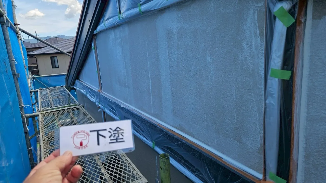 私たちは、単に水をかけるだけでなく、外壁材の強度を見極めながら、長年の汚れを徹底的に洗い流しました。この工程は、新しい塗料が外壁にしっかりと食いつくための「命綱」です。「丁寧な工事をしてほしい」というK様の願いに応えるべく、広瀬塗装店は見えなくなる下準備にこそ、一番の時間をかけています。ここから、家の再生が始まります。