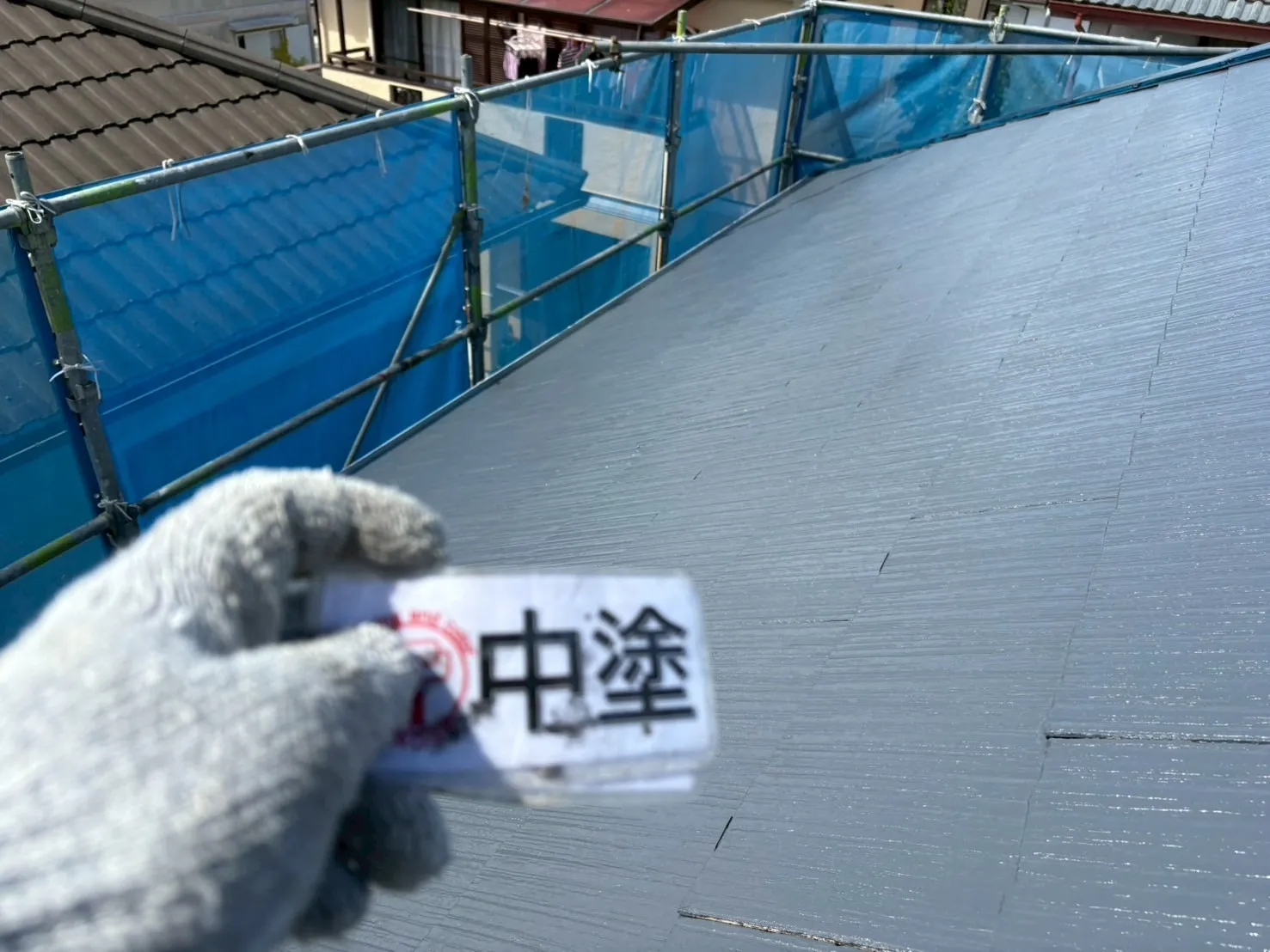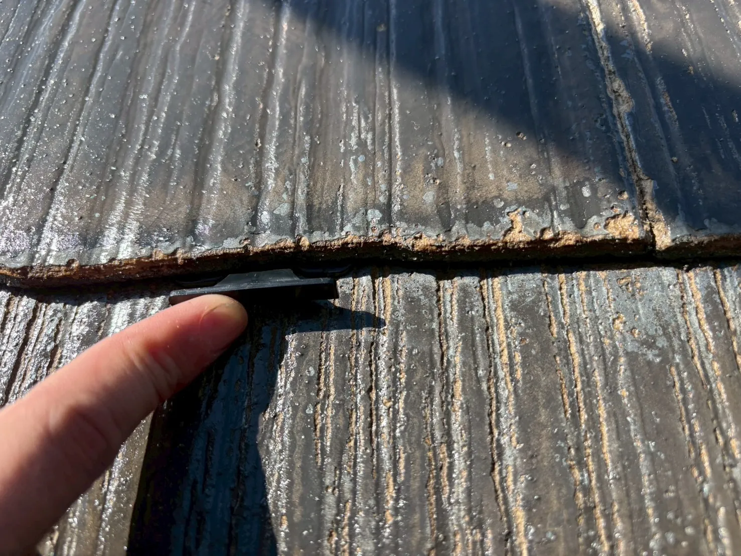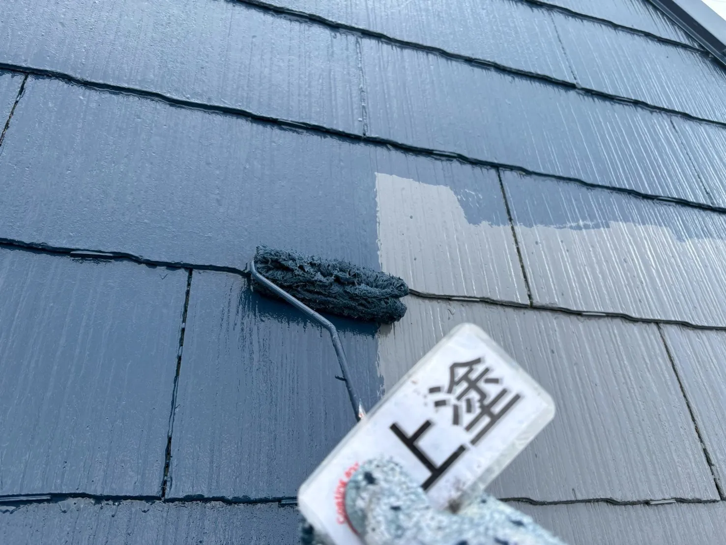 さらに、屋根材の隙間を確保して雨漏りを防ぐ部材「タスペーサー」もしっかりと挿入。これを怠ると、塗料で隙間が埋まり、逆に雨水が排出されずに腐食の原因となります。「見えない屋根の上だからこそ、過剰なほど丁寧に」。近隣エリアの業者には負けない、地元の専門店としての技術と誠意を注ぎ込みました。