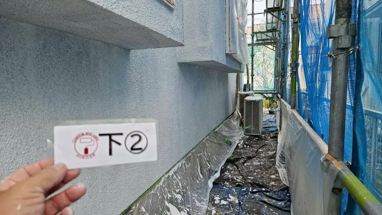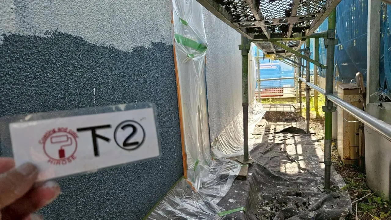 広瀬塗装店では、ただ水をかけるだけでなく、長年の汚れを根こそぎ落とす丁寧な高圧洗浄を徹底しました。特にK様邸のような塗り替えサイクルが長めの建物では、この洗浄の質が仕上がりの耐久性を左右します。地元の職人が、お客様の思い出が詰まった我が家を、まずは「素肌」の状態まで優しく、かつ強力に洗い上げました。ここからが再生のスタートです。