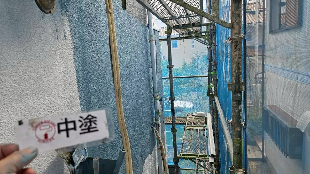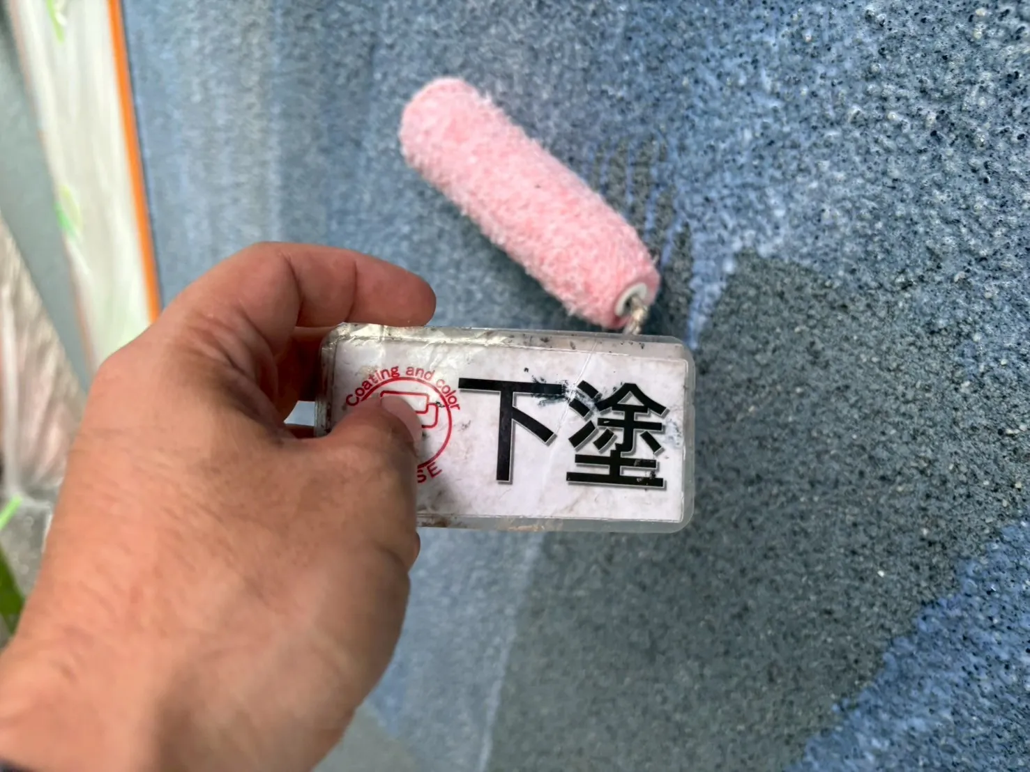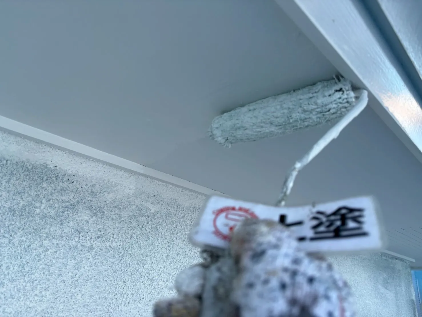 外壁色には、K様ご自身がお好きな鮮やかなブルー(75-60P)をお選びいただきました。しかし、前回の塗装から20年が経過していたため、外壁自体が塗料を吸い込んでしまう状態でした。そこで、通常の下塗りに加え、吸い込み止めとして「EMワイドシーラー」をたっぷりと塗布。壁の状態を均一に整えた上で、汚れに強く耐久性の高い「ナノコンポジットW」で仕上げています。