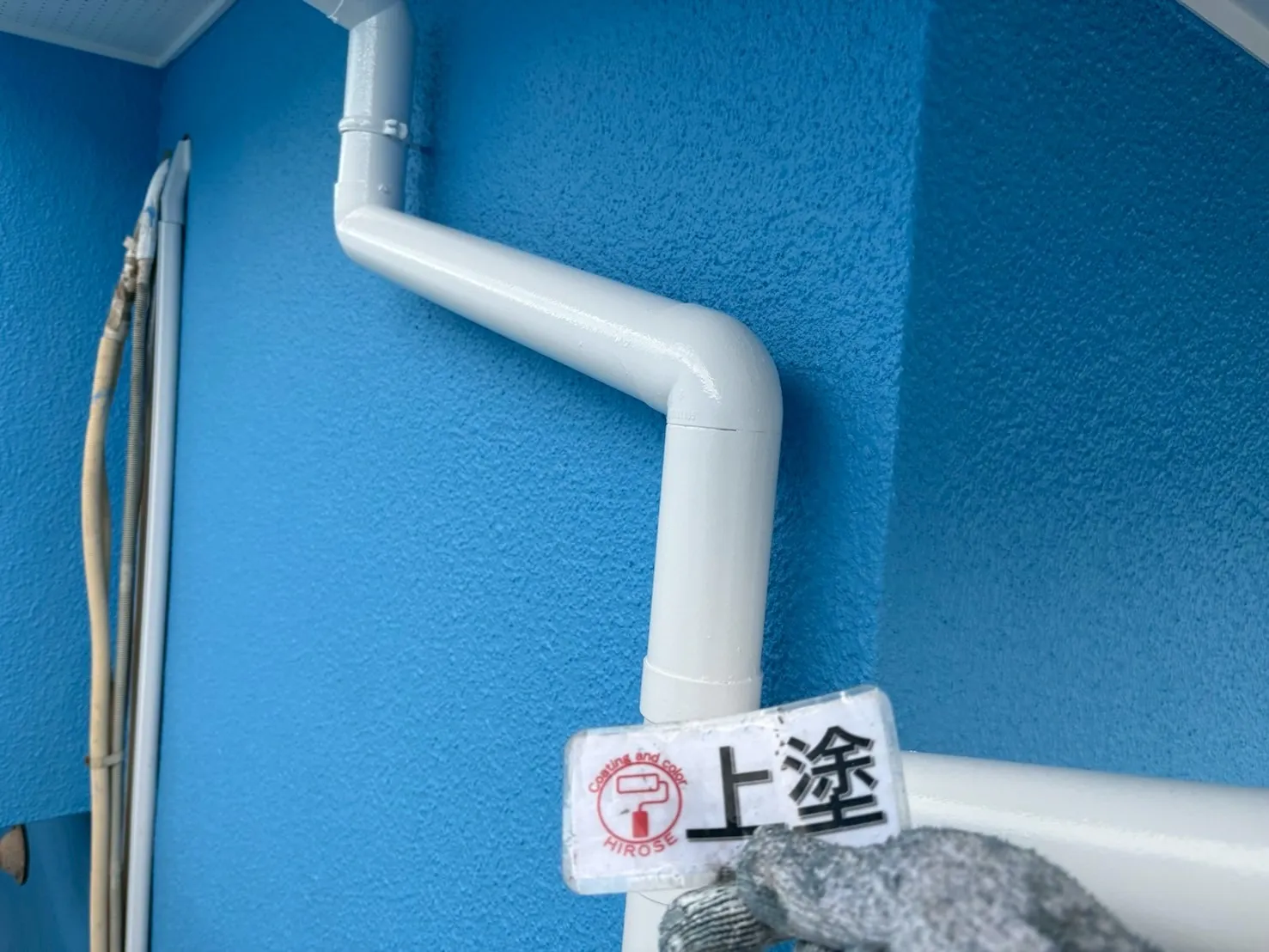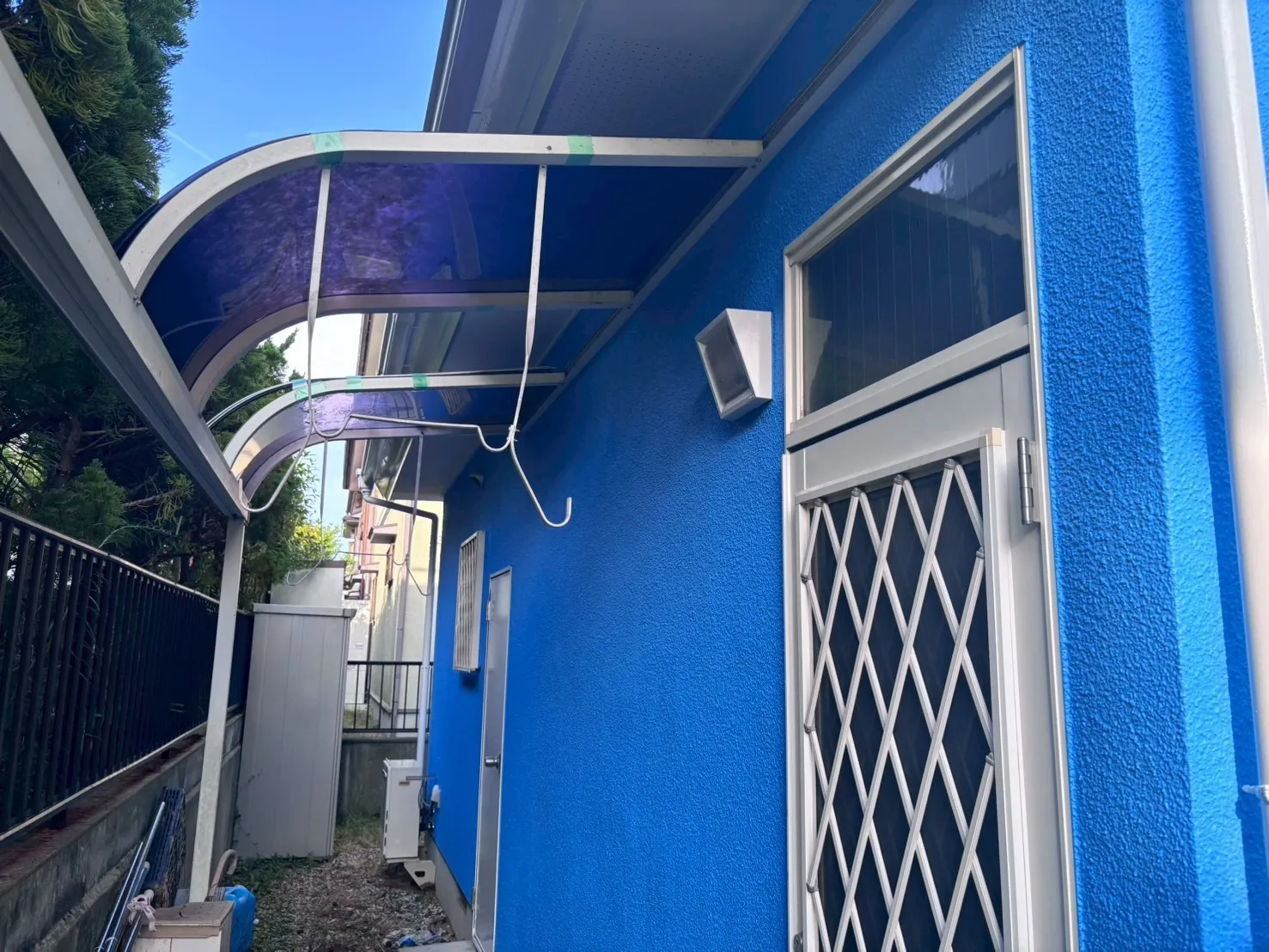 このひと手間により、鮮やかなブルーがムラなく発色し、新築時のような輝きを取り戻しました。ご近所の方からも「きれいな色だね」と評判になるような、品格ある美しい仕上がりを実現しています。