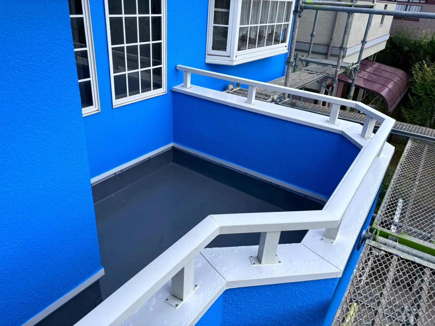 14日間の工期を経て、無事に完工いたしました。足場が外れ、鮮やかなブルーの外壁とシックなナスコン色の屋根が現れた瞬間、生まれ変わった我が家にご満足いただけたことと思います。