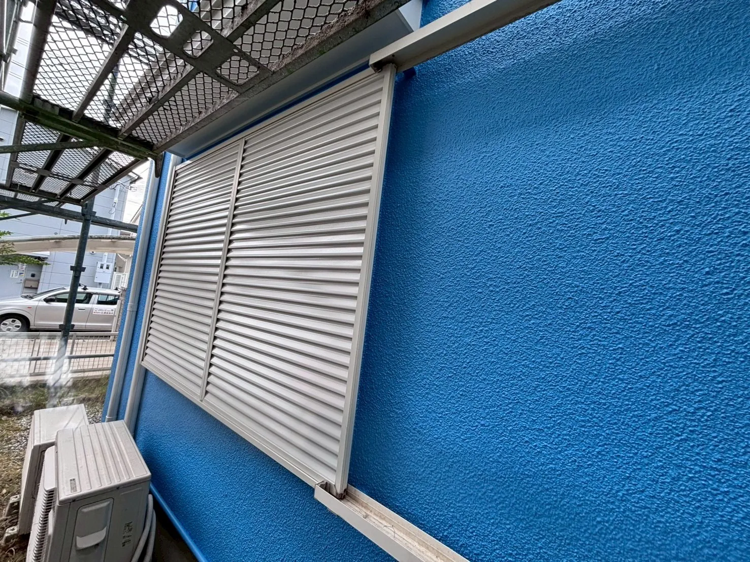 外壁や屋根がきれいになると、意外と目立ってしまうのが雨樋、破風板、雨戸、庇、水切りといった「付帯部」の汚れです。今回はこれらの箇所も、外壁のブルーや屋根のナスコンと調和するように丁寧に塗装いたしました。