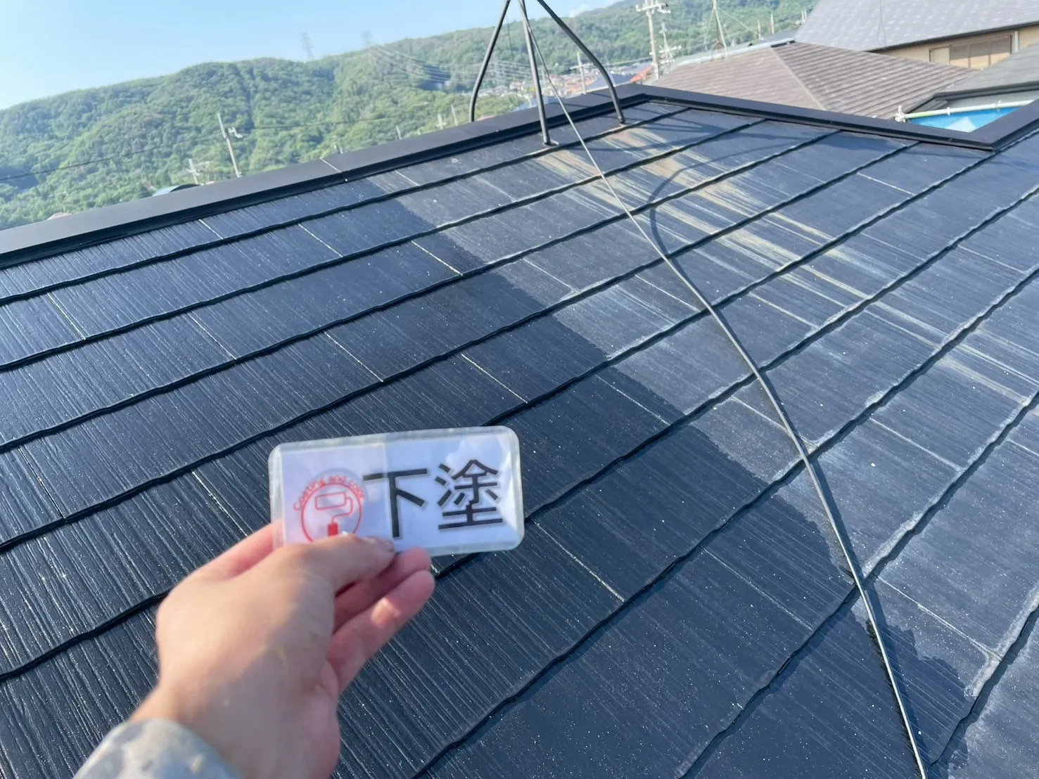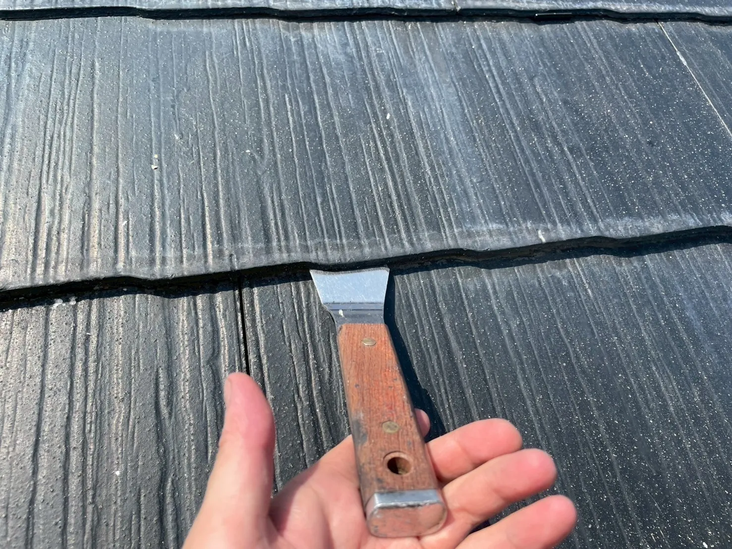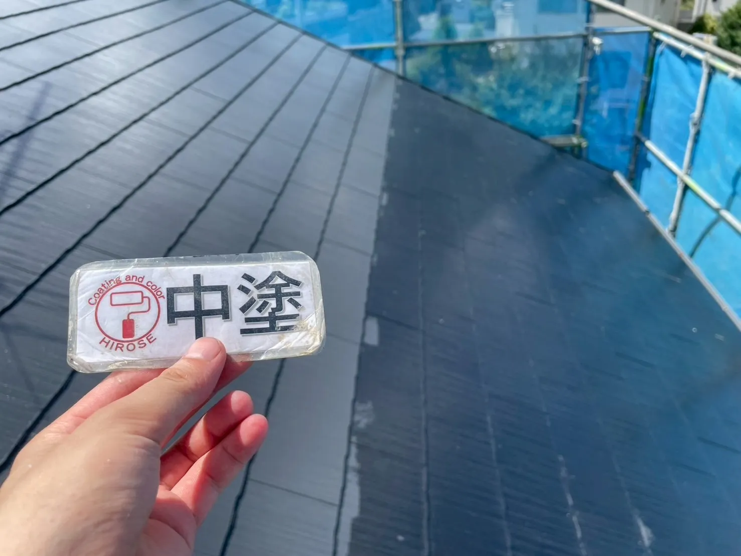 直射日光や雨を一番に受ける屋根は、住宅の中で最も過酷な環境にあります。今回は耐久性に優れた「ナノルーフ15」を採用し、色は重厚感のある「黒」で仕上げました。屋根の劣化は普段目に見えない部分ですが、だからこそ信頼できる塗料選びが不可欠です。