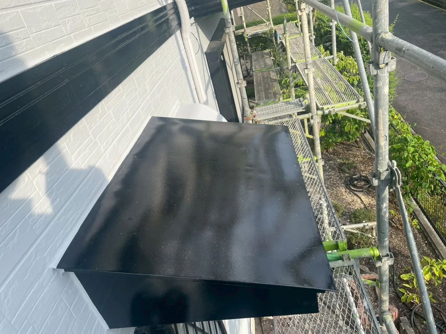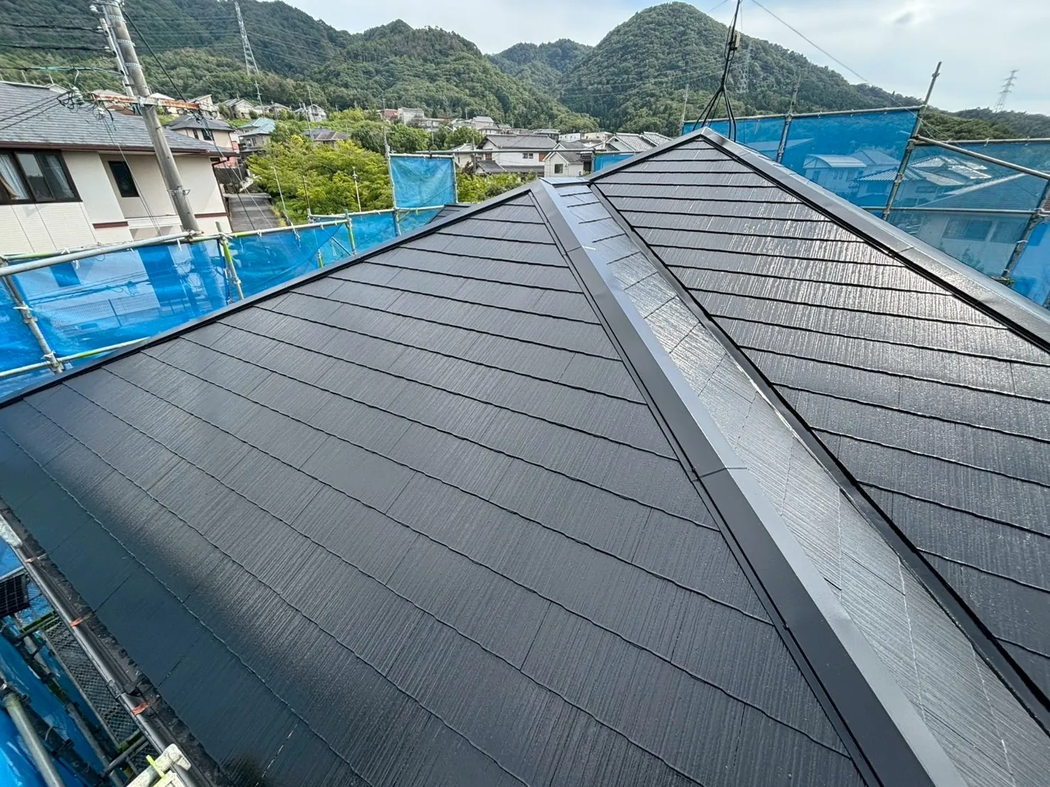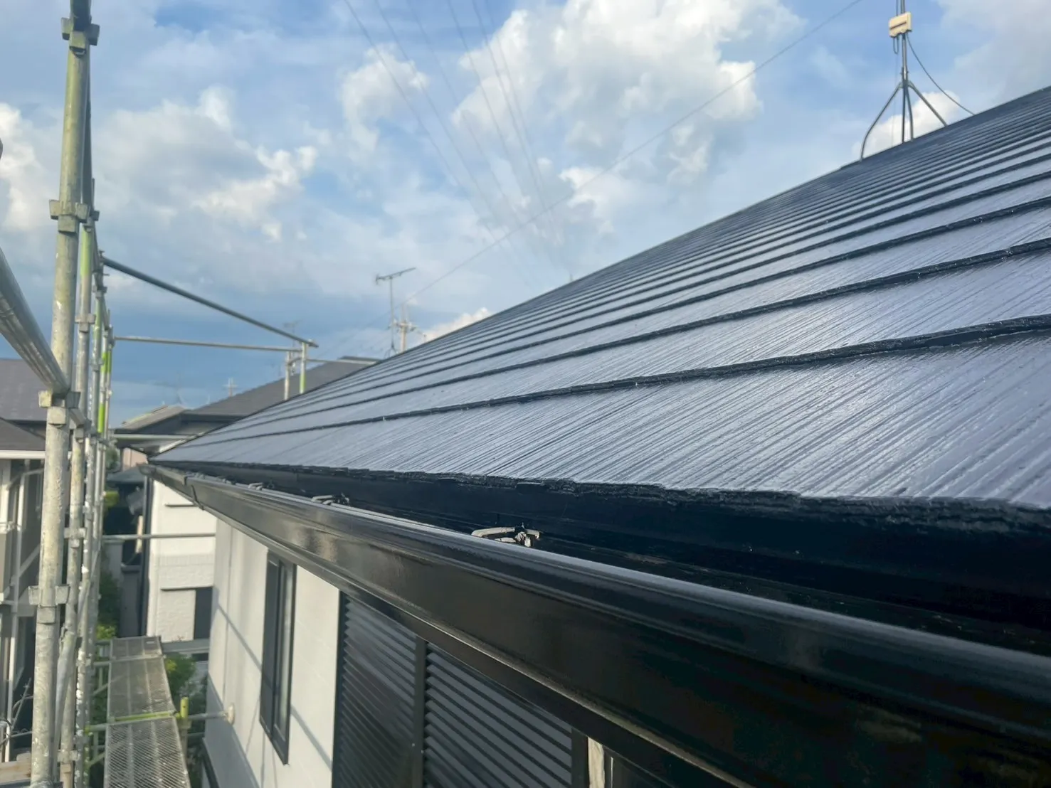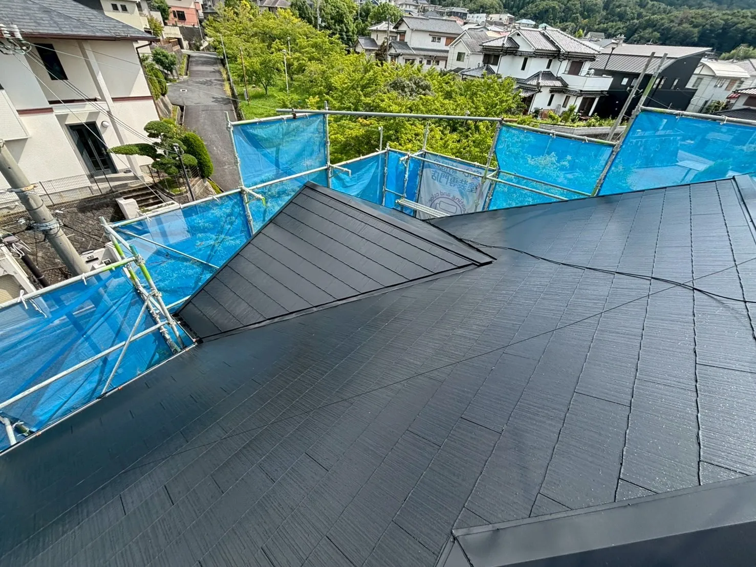 下塗りをしっかりと行い、その上からナノルーフ15を塗装することで、強靭な塗膜を形成しました。黒い屋根は家全体の印象をキリッと引き締め、外壁の色とのコントラストも美しく映えます。これから先、台風や激しい日差しが来ても、この屋根がS様の暮らしをしっかりと守り続けてくれるはずです。見えない場所にも最高の安心をお届けします。
