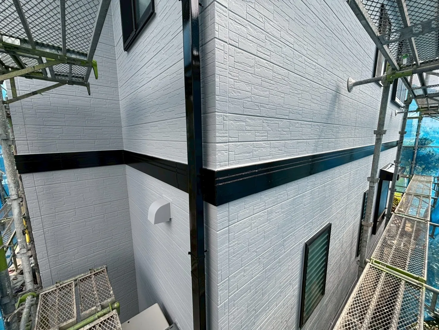 下地処理を終えた外壁に、熟練の職人が手塗りで丁寧に層を重ねていきます。元のデザインを損なうことなく、機能性だけを格段に向上させる。それはまるで、愛着ある服を新品同様に仕立て直すような作業です。S様が大切にされてきたお住まいの雰囲気を壊さず、新築時のような上品な艶と輝きを取り戻しました。