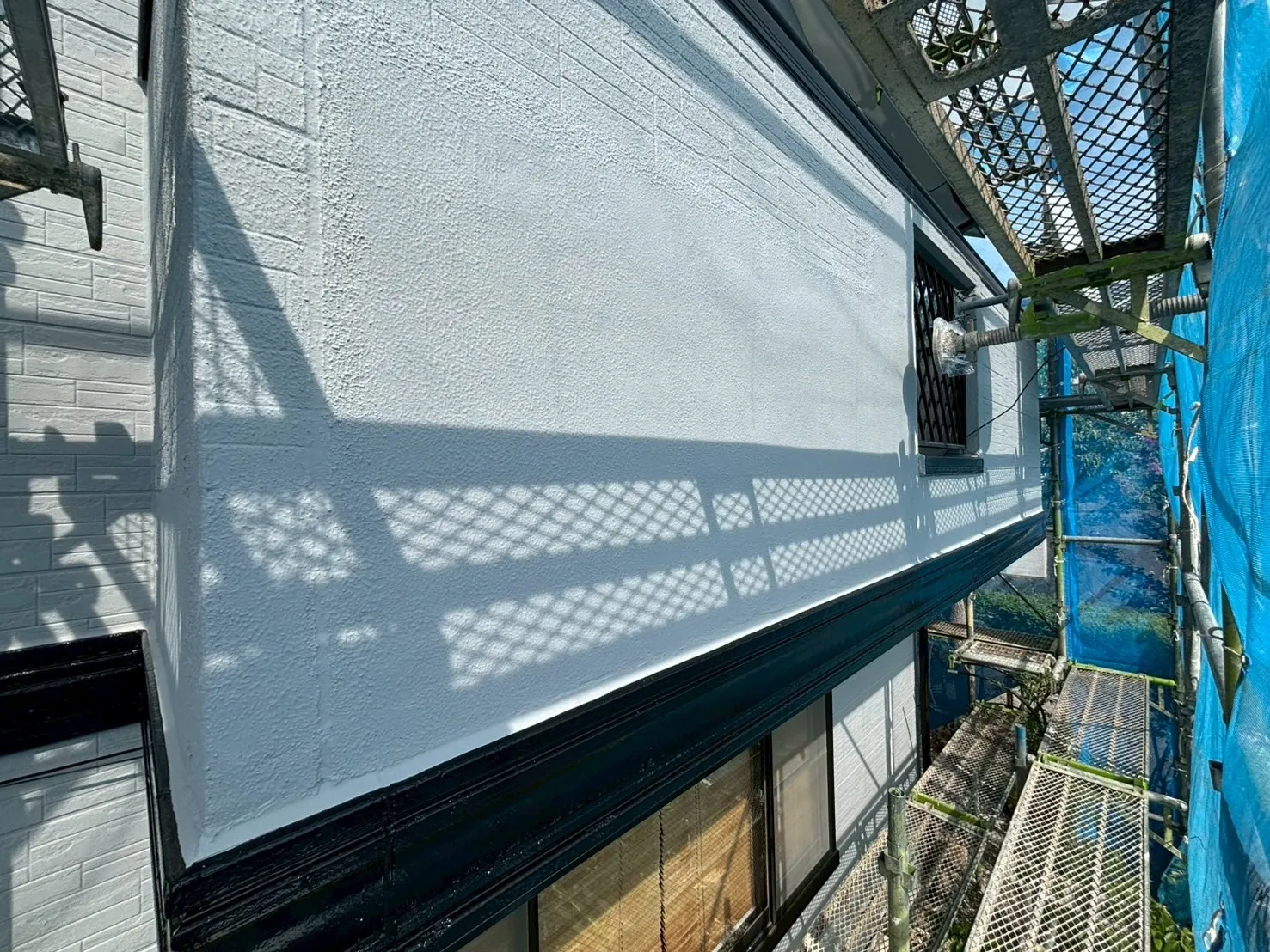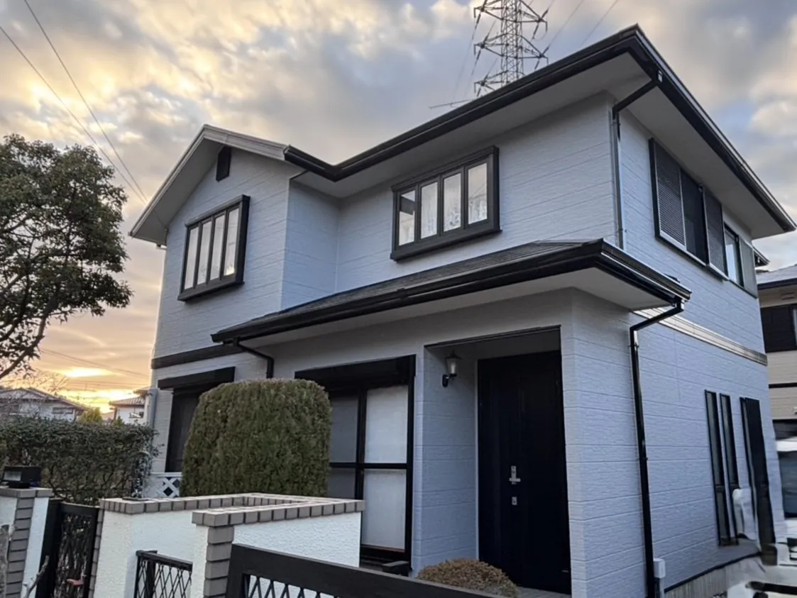 今回は、水切りや雨戸に至るまで、付帯部も徹底的に塗装を行いました。素材に合わせた適切な塗料を選び、刷毛跡を残さない丁寧な手仕事で仕上げています。S様も工事期間中、細部まで行き届いた作業をご覧になり、LINEやメールで喜びの声を送ってくださいました。細部までピカピカに仕上がったお住まいは、遠くから見ても凛とした美しさを放っています。
