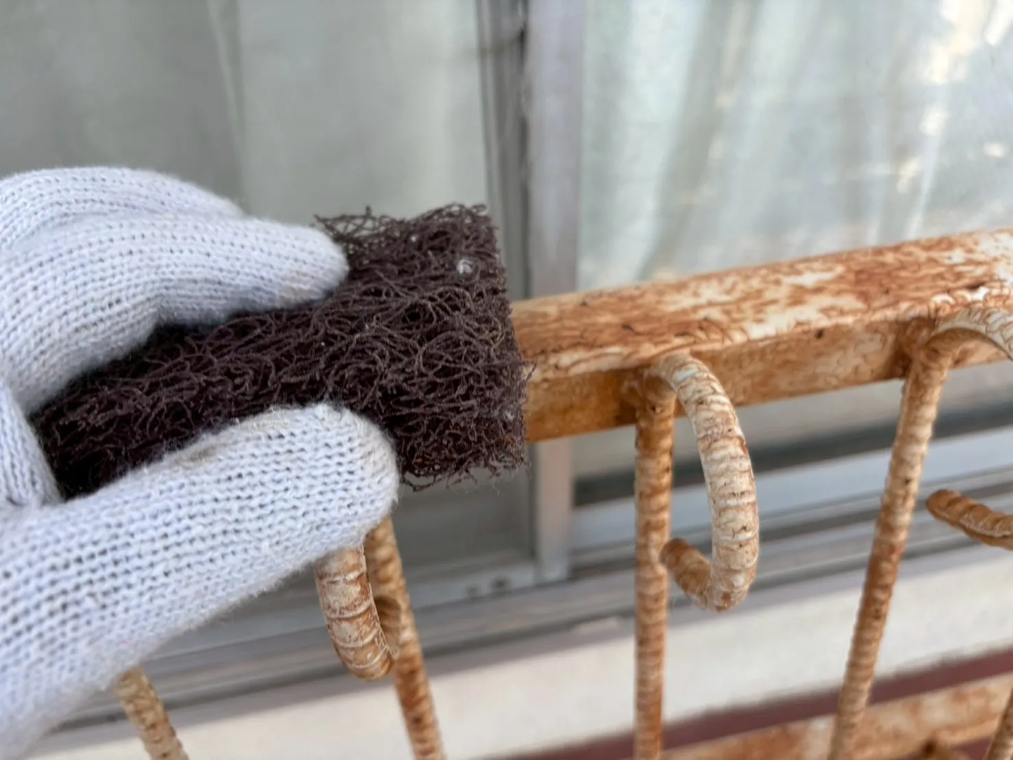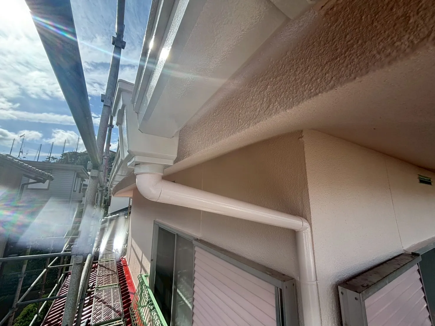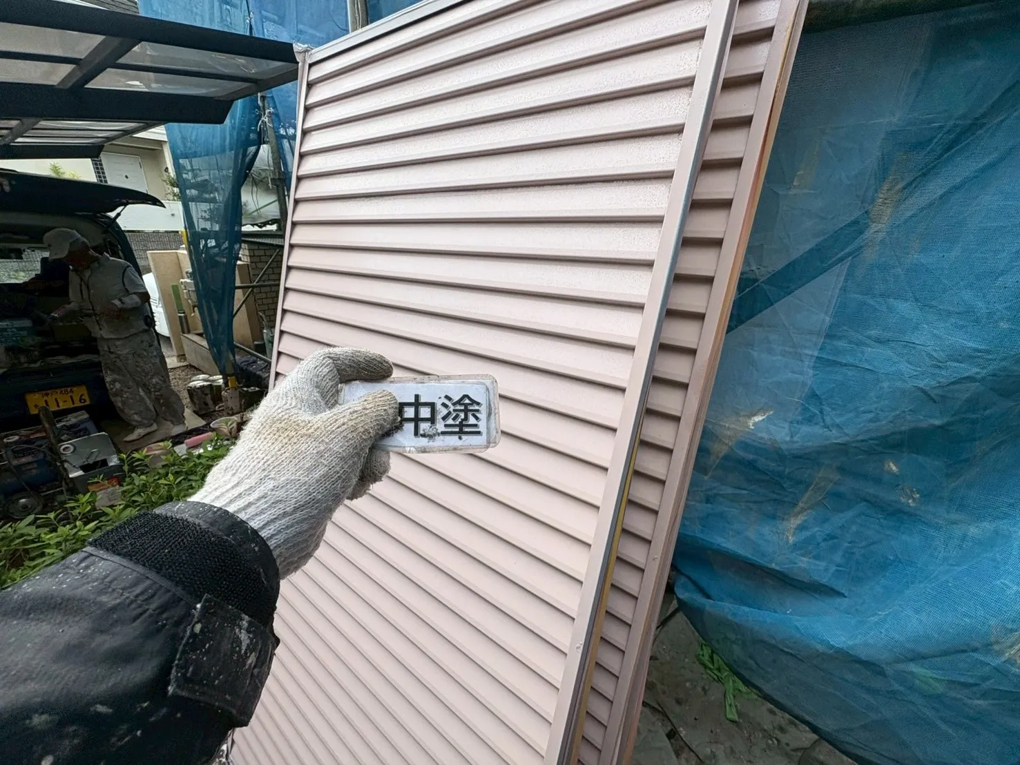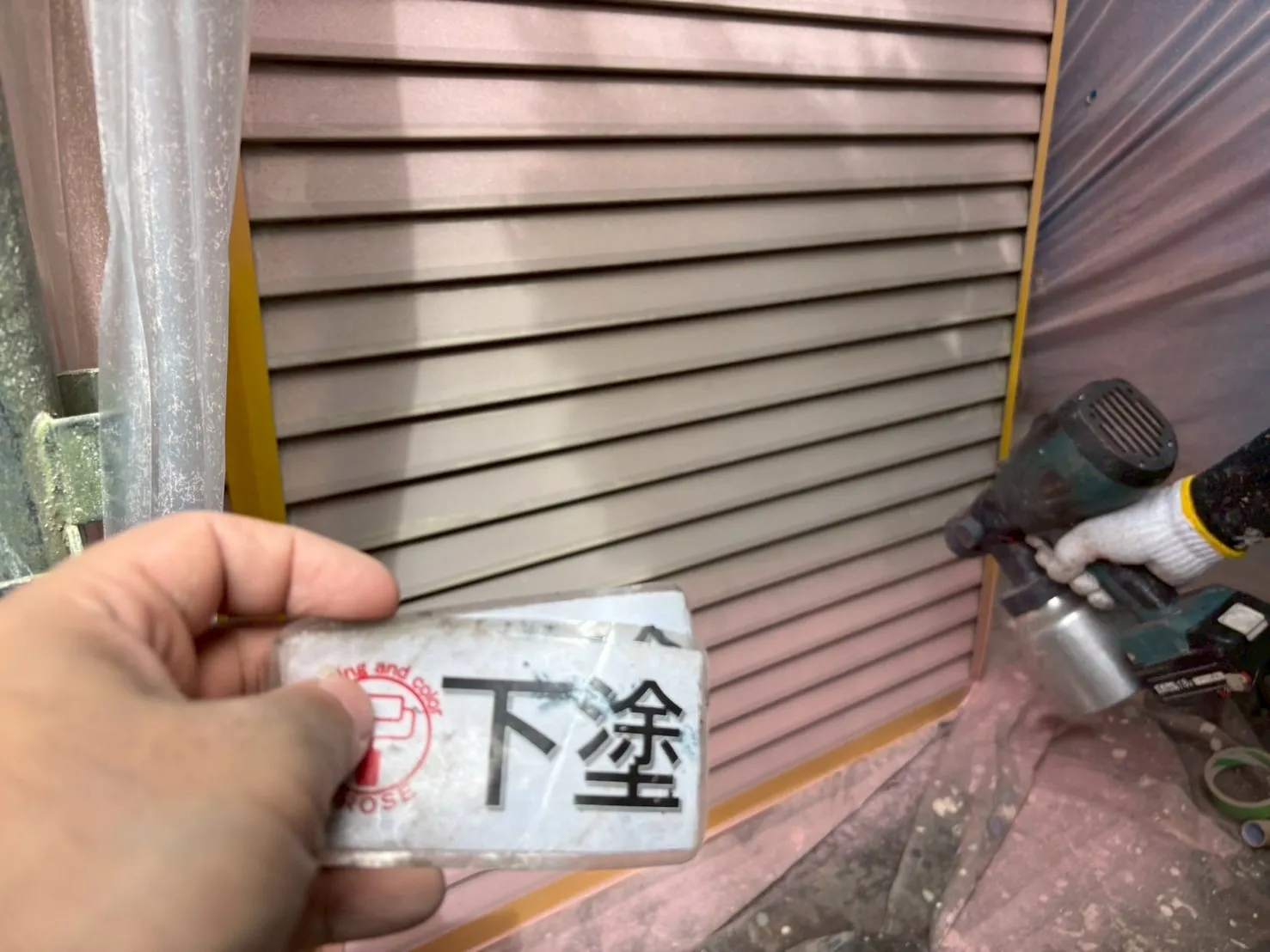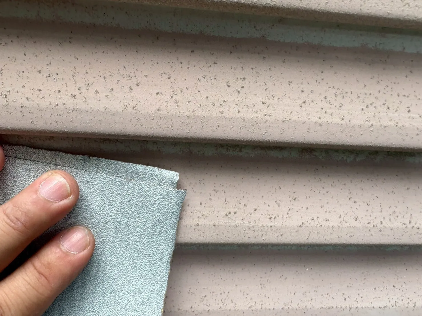 また、雨戸の色にもこだわりがあります。「既存のピンク系の色が気に入っている」というお声を受け、既存の色に合わせて現場で調色を行いました。既製品の色をただ塗るのではなく、お客様の「好き」という感覚に寄り添い、色を作り出すことです。これも私たち職人の技術の見せ所になります。奥様の想いが詰まった、優しい外観へと生まれ変わりました。