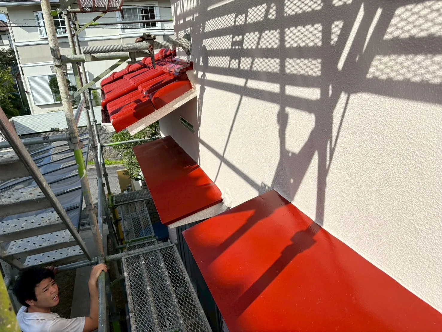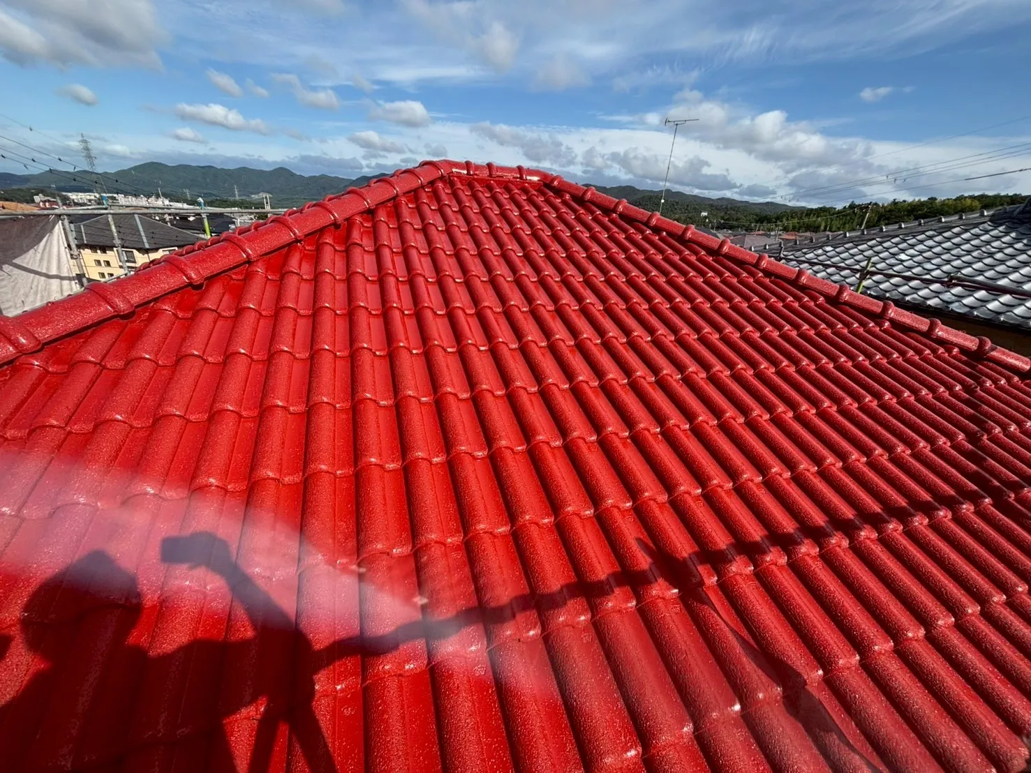 屋根は紫外線や雨風を直接受ける過酷な環境にあります。M様邸の屋根塗装では、通常の下塗り工程に加え、さらに回数を増やし「下塗り2回」の徹底した施工を行いました。これにより、上塗り材との密着性を高め、耐久性を格段に向上させています。