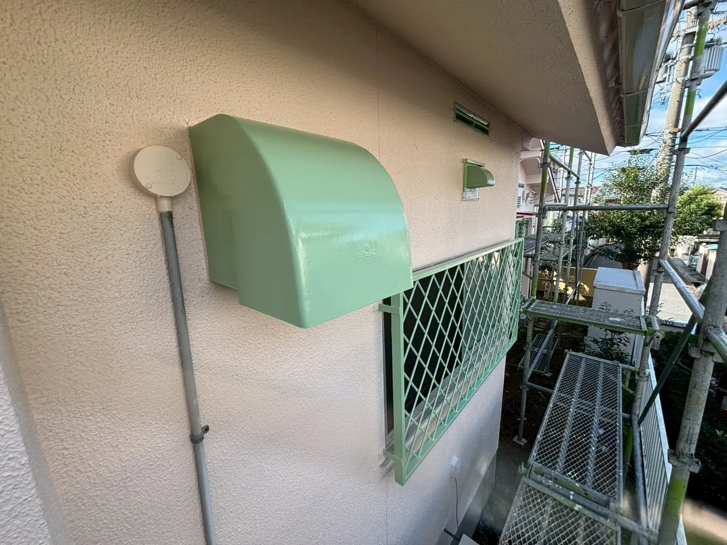 軒裏や雨樋、面格子などの付帯部も、家全体の印象を左右する重要なパーツです。ここで光ったのが、ご主人のセンスでした。鉄部の塗装色に悩まれていたご主人が選ばれたのは「若草色」です。