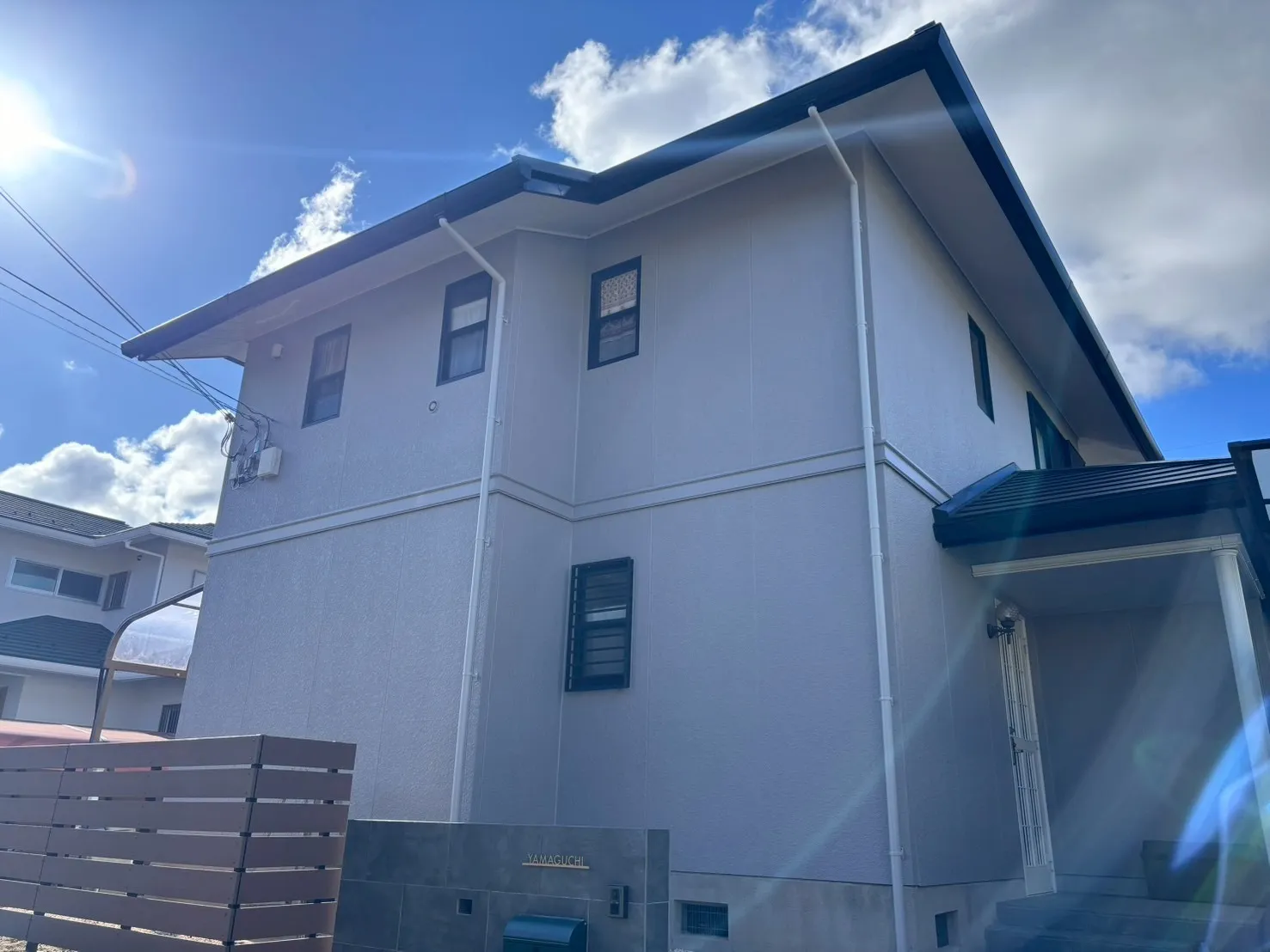着工から19日間。Y様との密なコミュニケーションを通じて、一つひとつの工程を積み上げてきました。色選びの悩み、屋根の不安、雨樋の不具合。それらすべてが、完工というゴールを迎えた今、大きな満足感へと変わりました。足場が撤去され、チャコールグレーの屋根と、上品な3分艶の外壁が姿を現したとき、近隣の景観に馴染みつつも確かな存在感を放つお住まいの姿に、スタッフ一同胸が熱くなりました。工事金額以上の価値を提供すること。その約束を、目に見える形でお届けできたと自負しております。