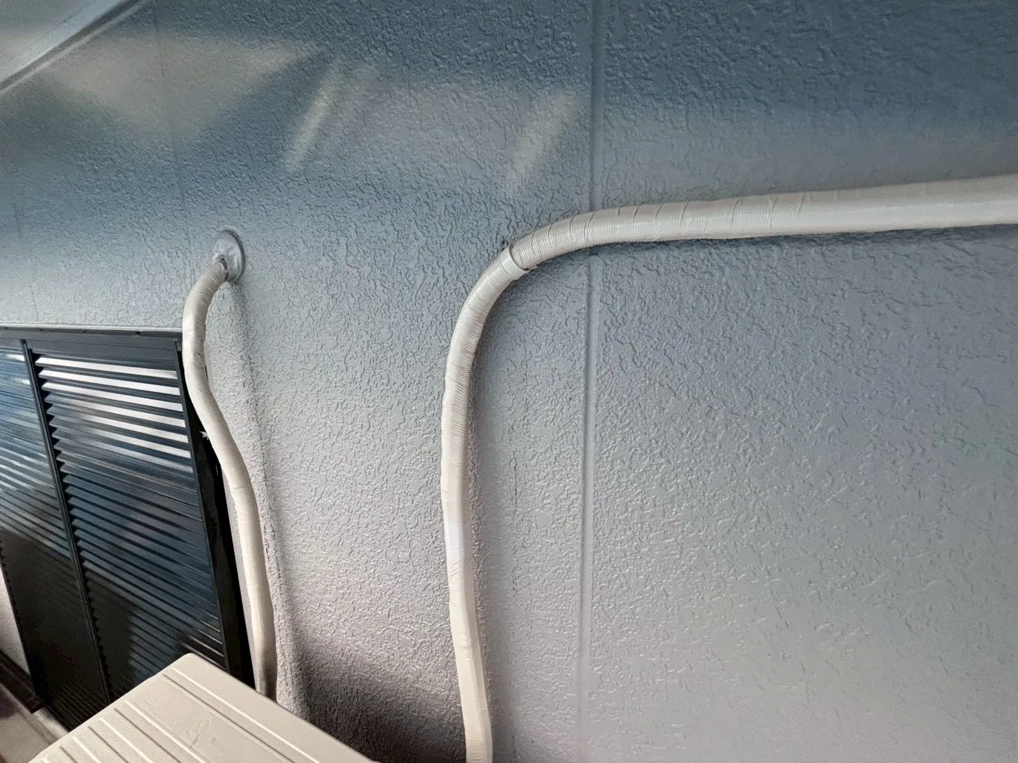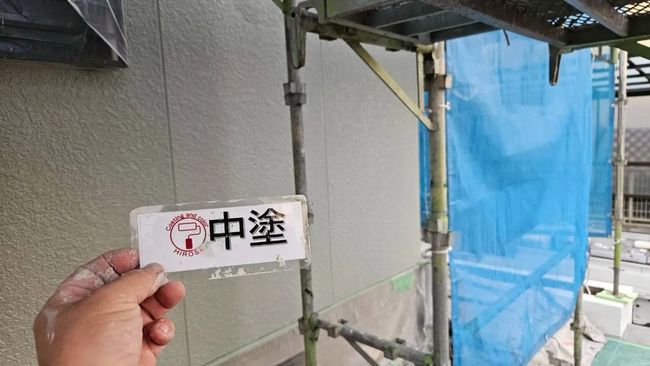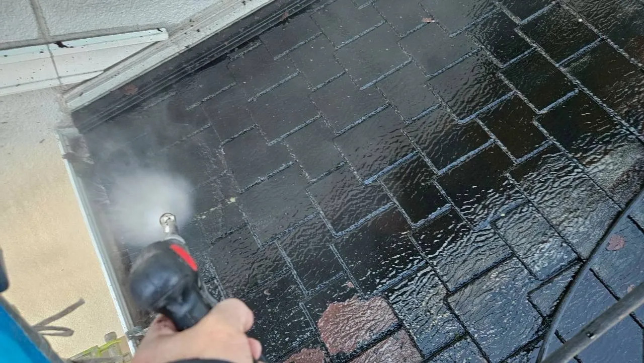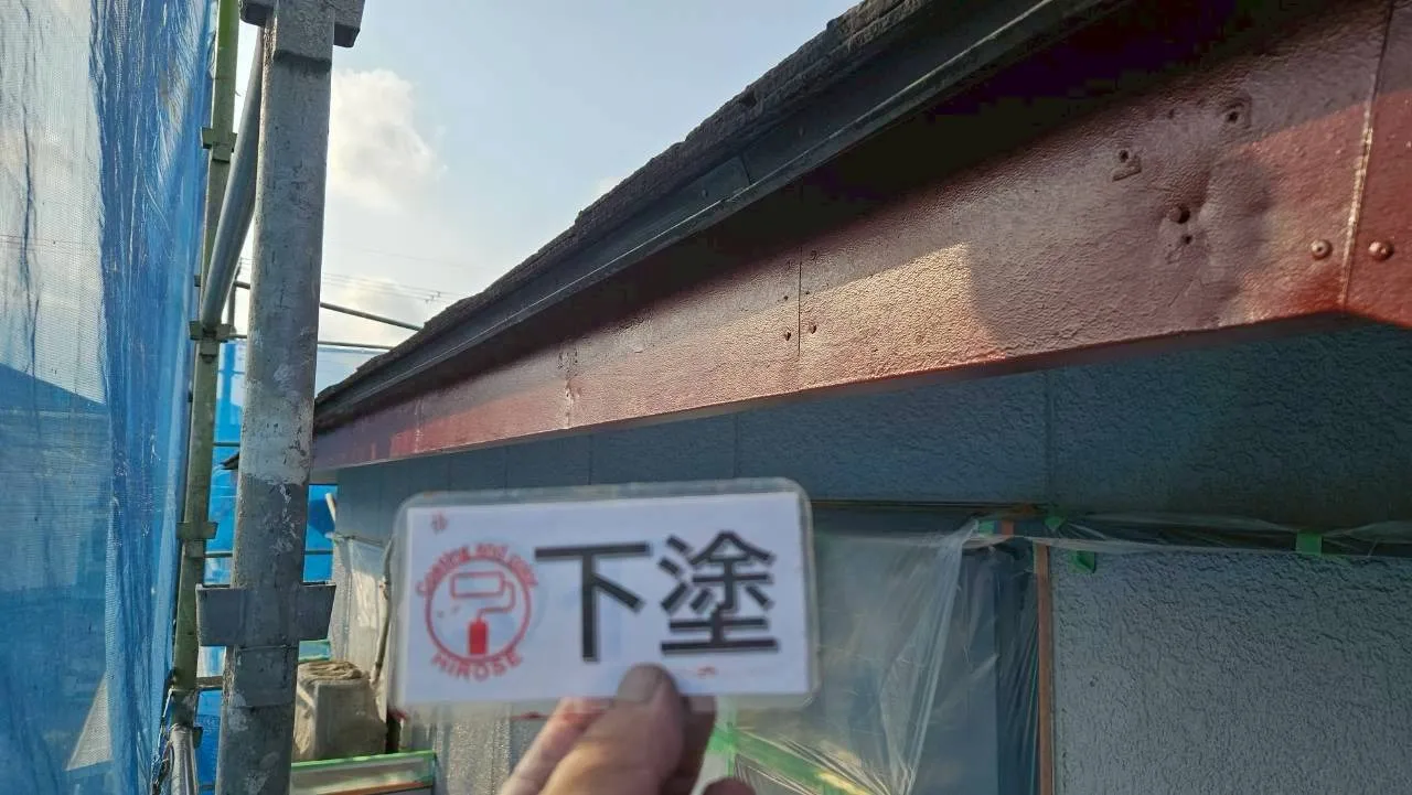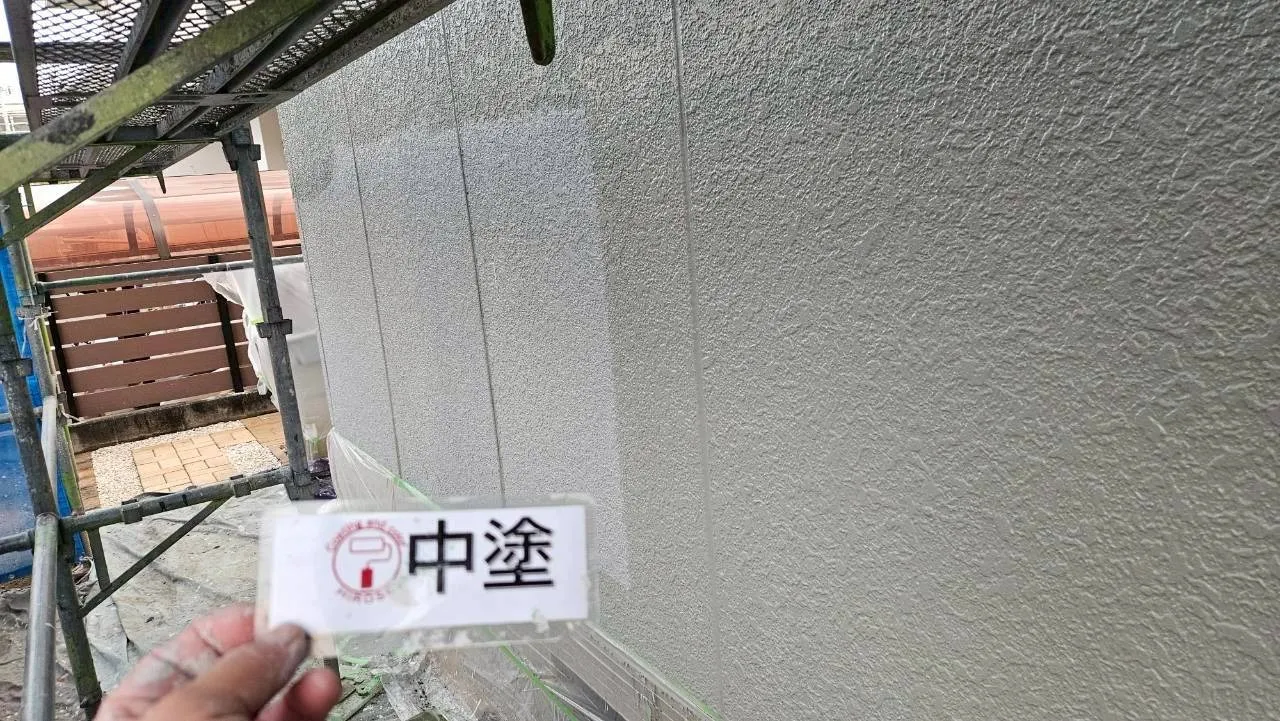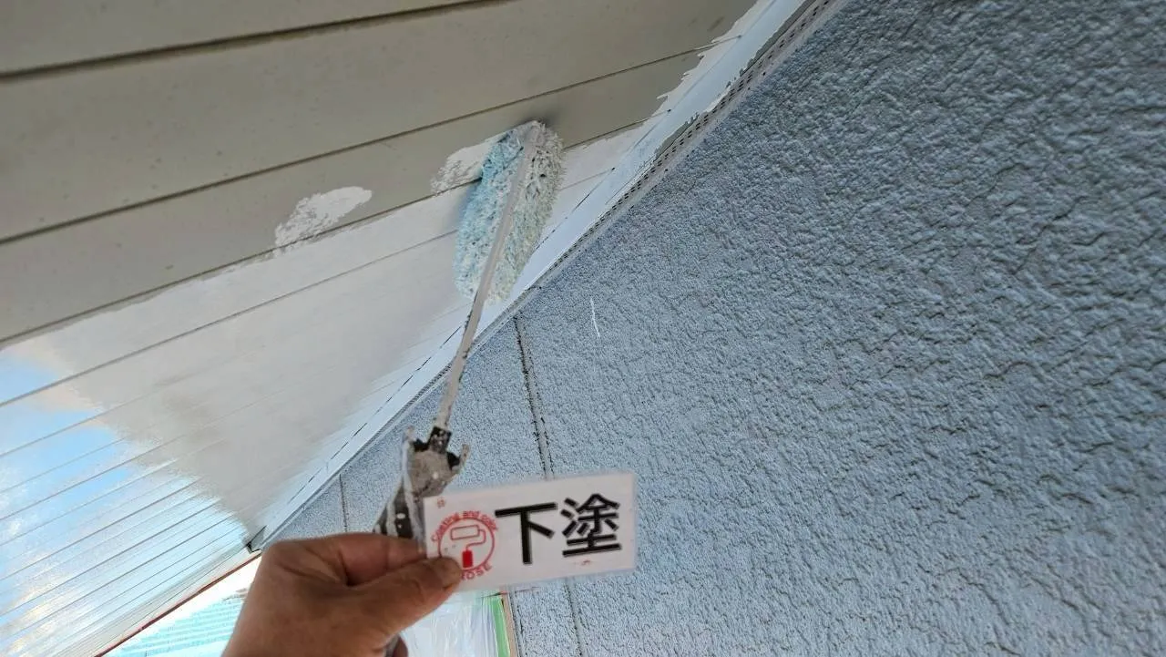 外壁塗装において、最も基礎となるのがこの高圧洗浄です。Y様のお宅は閑静な住宅街の一角にあり、周囲の環境によって蓄積された塵や埃、見えないカビなどが付着していました。これらを完全に除去しなければ、どんなに高品質な塗料を使用しても、本来の密着力を発揮することはできません。